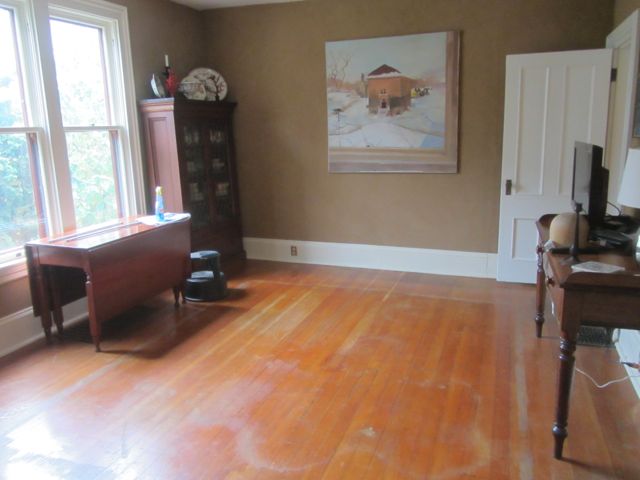Last week having rediscovered the word “patinated” we decided to “renovate” the old wood floors instead of sanding and refinishing…