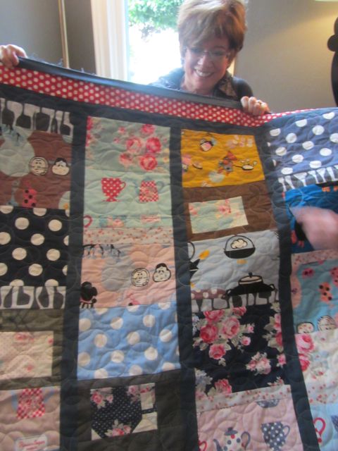 and Kathleen’s friend Diane was visiting with her nice quilt done all with Lecien fabric from Japan…