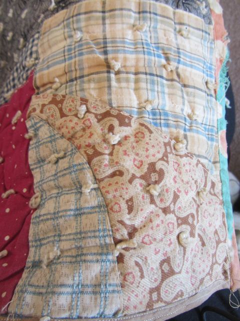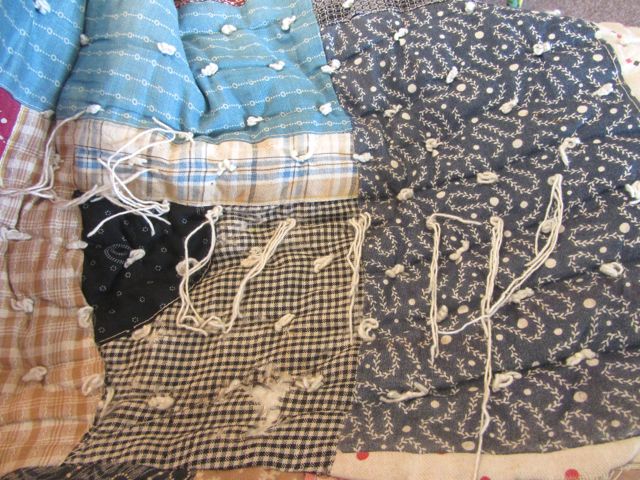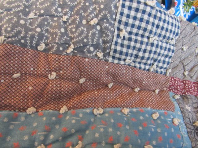 The quilts ate so,so lovely!! The quilt with long ties, I wonder if someone forgot to cut them off…. I like the many different pieces though. The maker must of attacked her scrap pile. 🙂