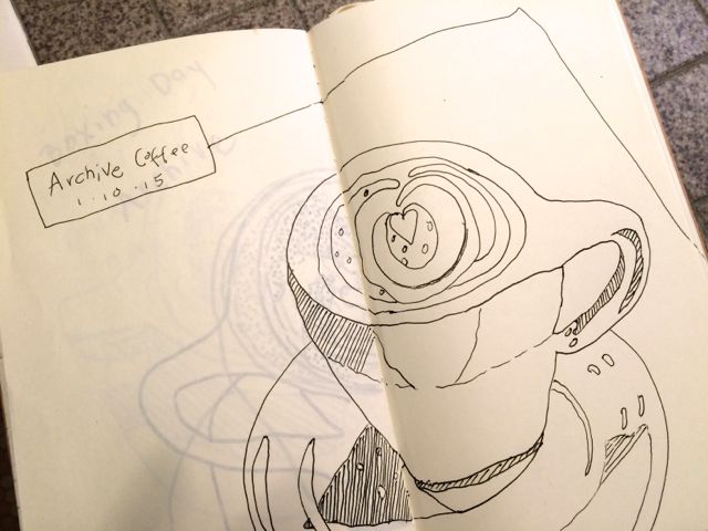 …and SOME days are really happy days because drawing and coffee join up. This morning the Salem Sketchers group was meeting at Broadway Commons, and though I never have joined the group before, I have been a fan of Urban Sketchers for a few years…so I went along and got a coffee and started in drawing…