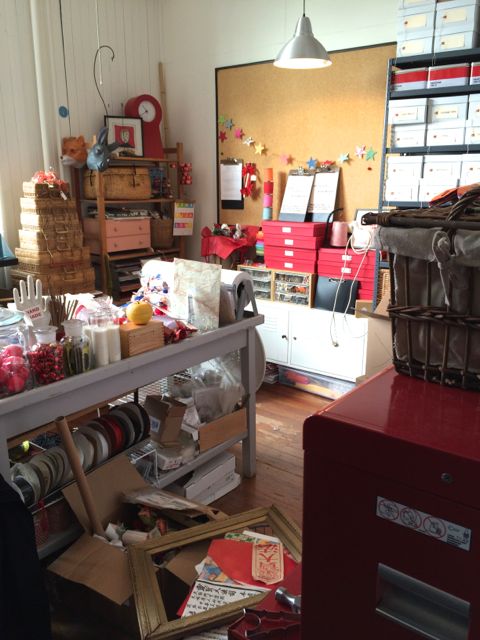 In the late fall my long-time friend Nan moved to Portland and took her studio with her. Today I took a nap-time break on Sidney Day (Monday, the day when R & I routinely care for our adorable grandson) and dropped in to her new Portland studio. Her business is called Souvenir Suitcase…