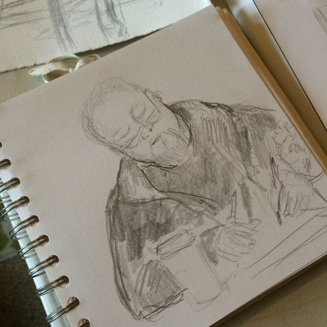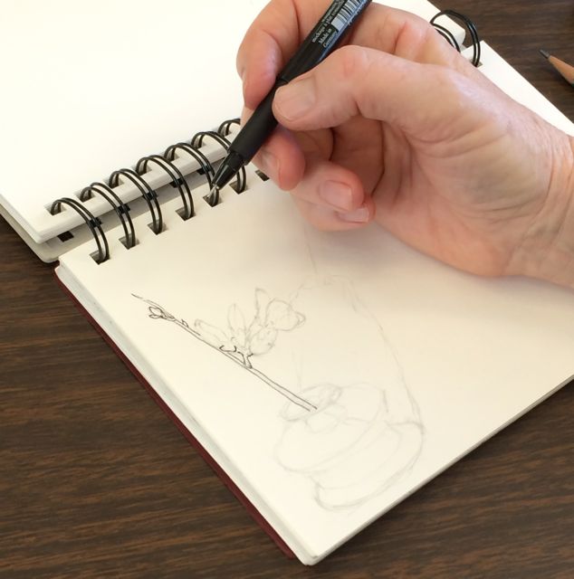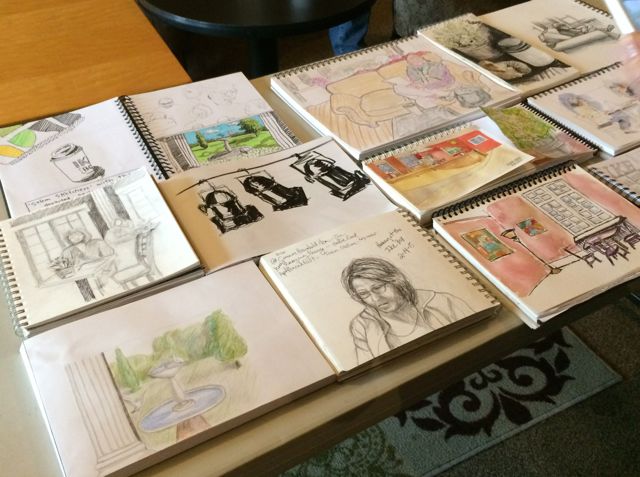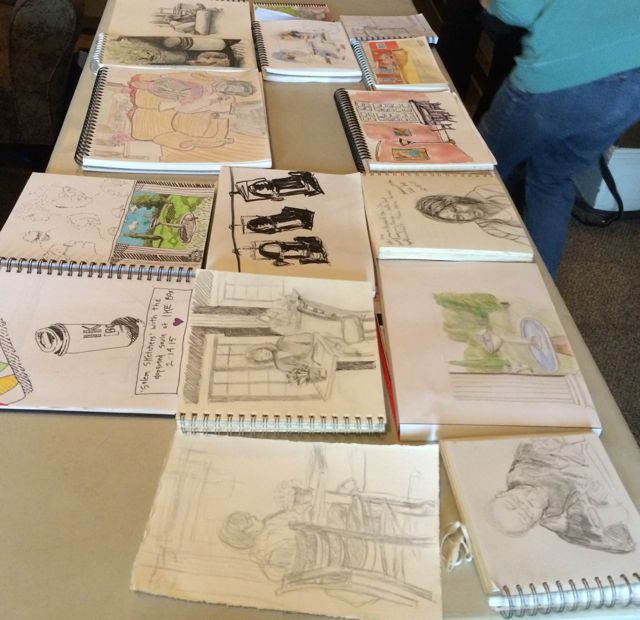 And then Sunday the nature sketching group met at the Straub Environmental Center…a different vibe and also very fun. In this case everybody brought something to draw and we all sat around a big table sharing tales of…now this is geeky in a good way: favorite erasers, favorite pencil sharpeners, good gesso, odd geese marooned in flocks of Canada geese, owls, mixing colors in watercolor…you get it. But mostly just drawing…