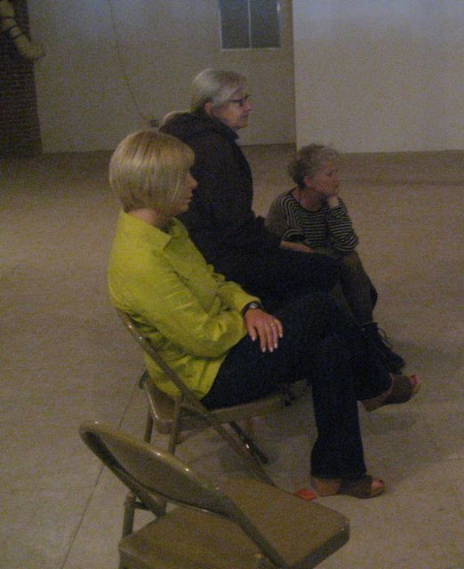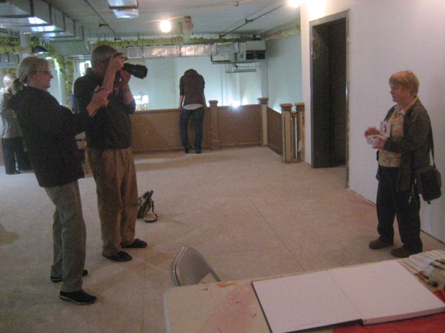 The photographer Barbara Rowland was such a talented presence in our art community. I met her at the first Project Space, some years ago. She walked around and around Salem taking photos, was never without a camera. Because she was a wily photographer she was also good at avoiding being photographed herself…but I did get a few shots of her…here she is with Phil Krug on the mezzanine of the old Metropolitan store…site of two Project Space events.