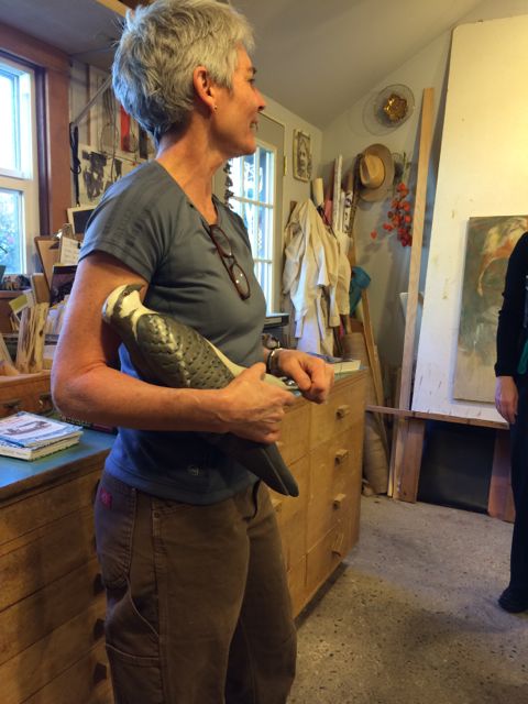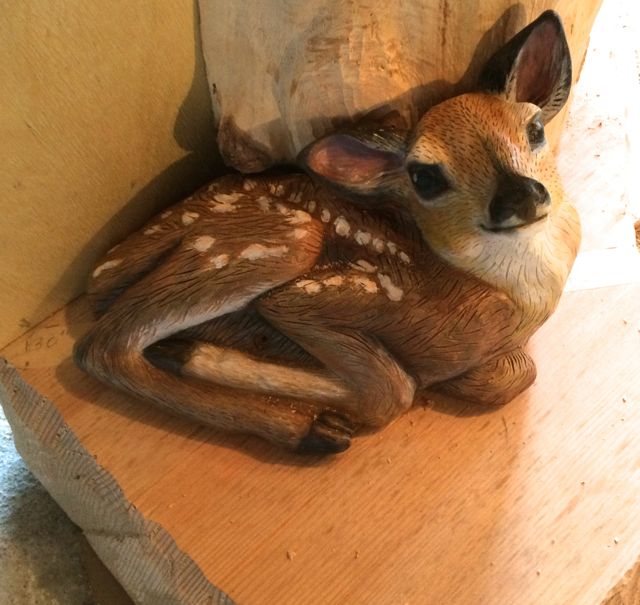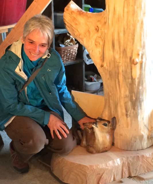 Save the DATE!…and that date is Saturday, April 11, 2015.  10:00 a.m.  Artist Kristin Kuhns and the Salem Public Library will be unveiling Kristin’s two pieces for the entrances (one on each floor) to the children’s room at the library.  Library staff was intent that when Children enter the library they know EXACTLY where to go…and there will be no mistake.  Kristin has been working on the project for a year and the work has included felling trees, building a wide variety of fauna (all native to Oregon),  constructing trees for habitat for the birds and animals she has made, hand painting and finishing all the “critters” while also making a program for installation.  Bases needed to be made, giant drill bits and the logistics of attaching the pieces to the Library’s concrete walls, all a bit overwhelming to me… but well within Kristin’s range, impressive and beautiful.  Take a look at the progress as the year has passed…