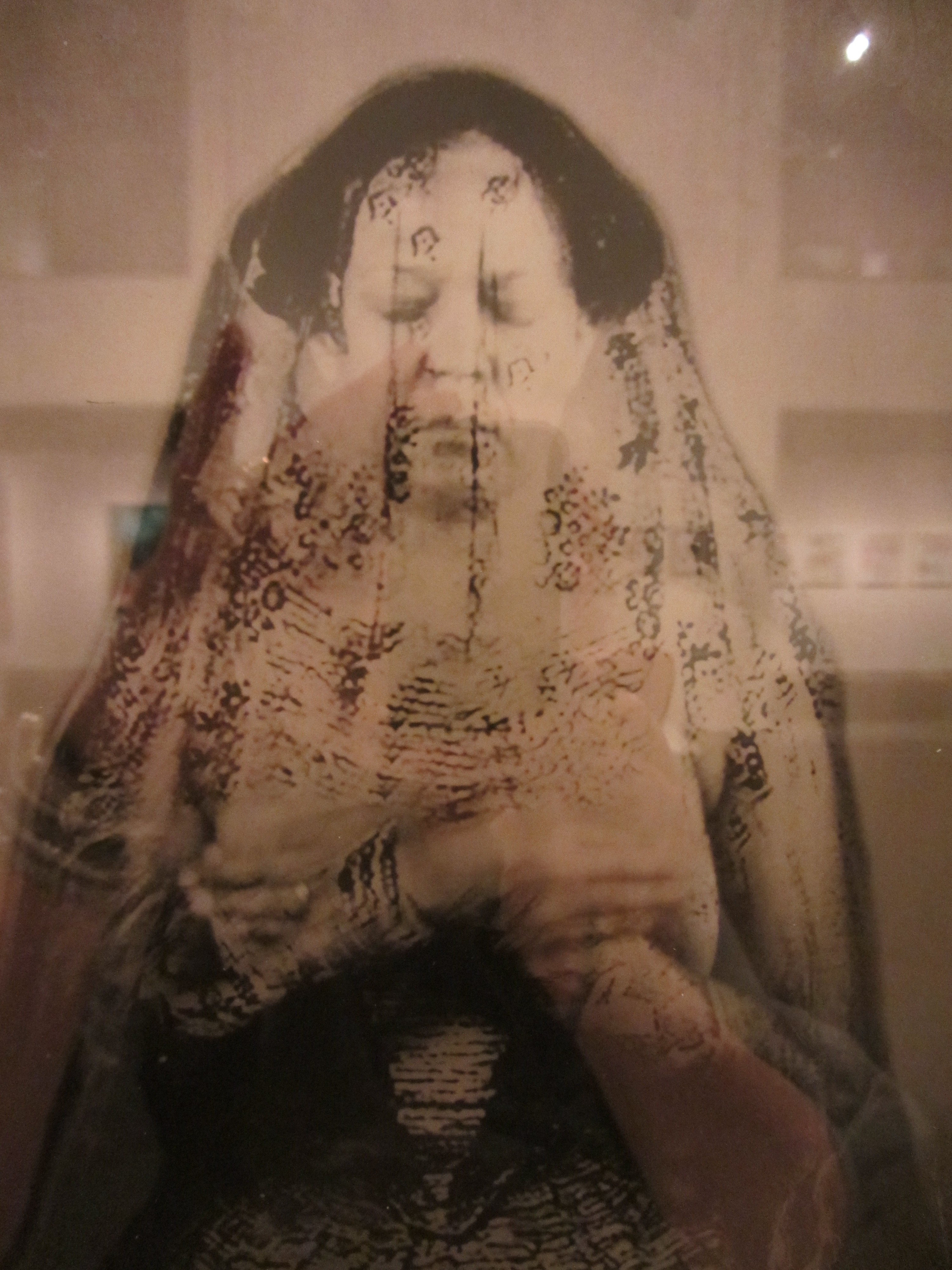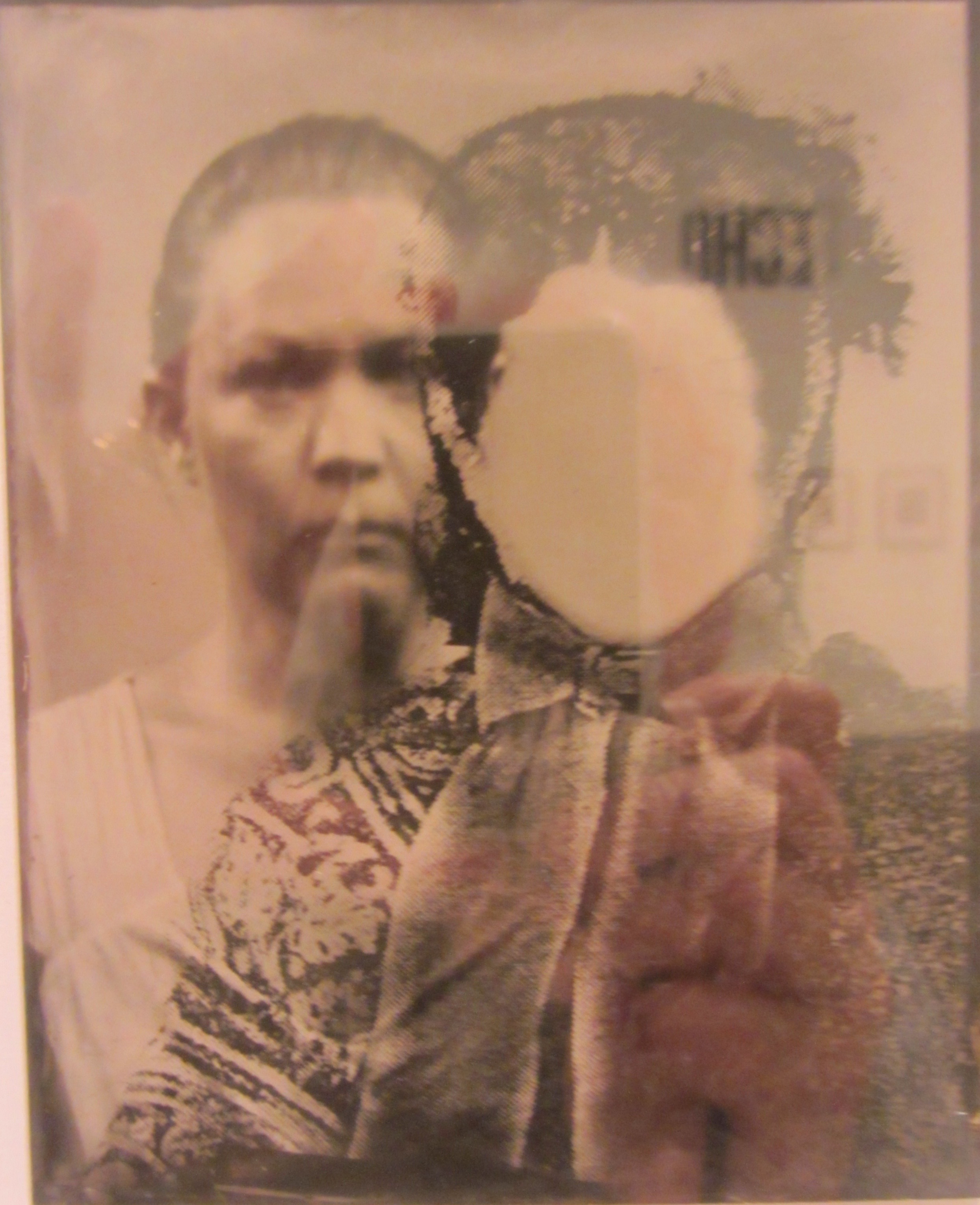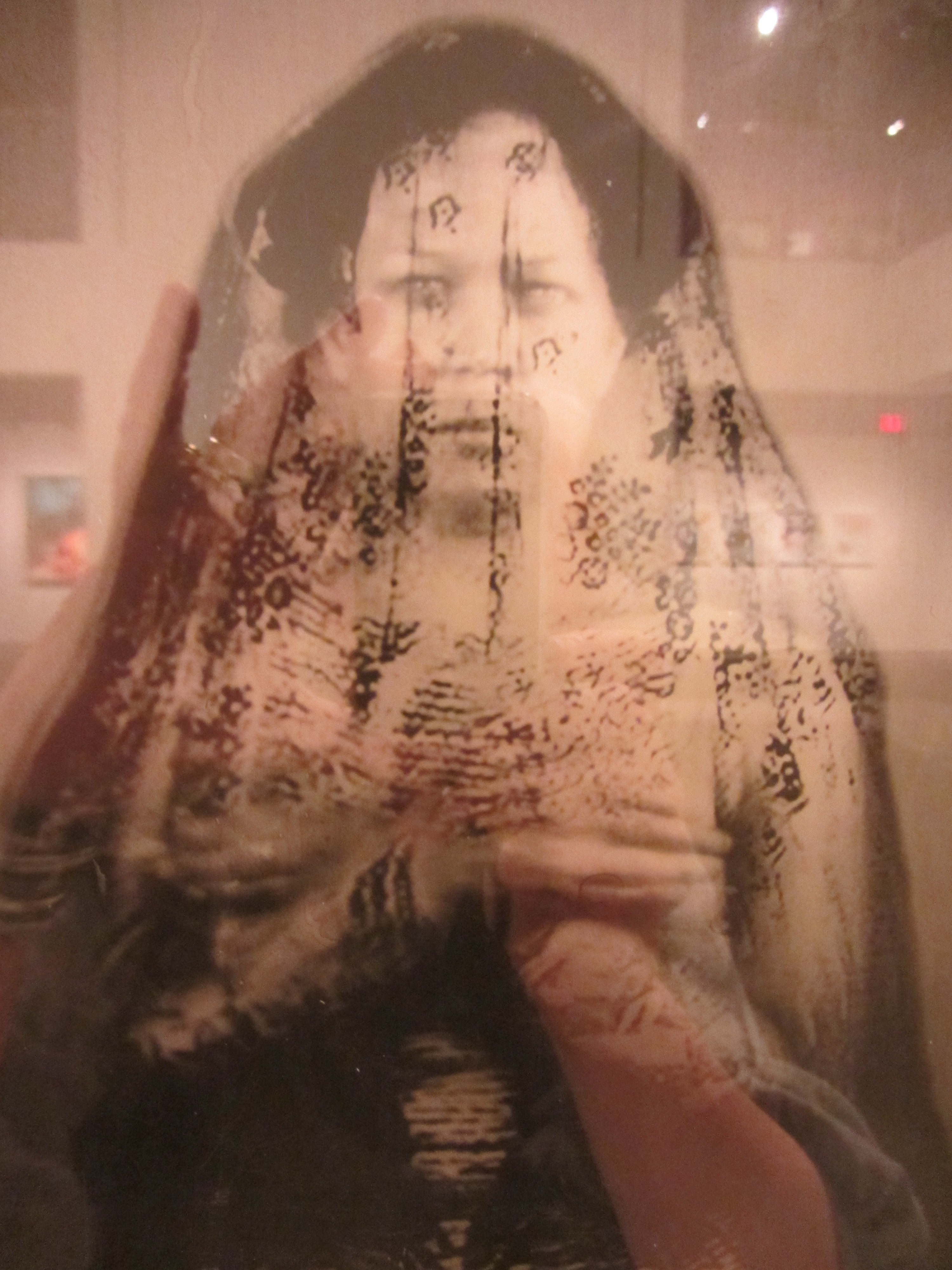 We also saw Willamette faculty member photographer Alexandra Opie’s show Echo…she’s been working for a couple of years with Collodian and Daguerreotype processes and the photos, all portraits, combine layers using 1870’s orginal photos superimposed on 2014/15 persons. My favorites were the self portraits…(here keep in mind the additional layer of glass and reflection in well-lit a museum setting…)
