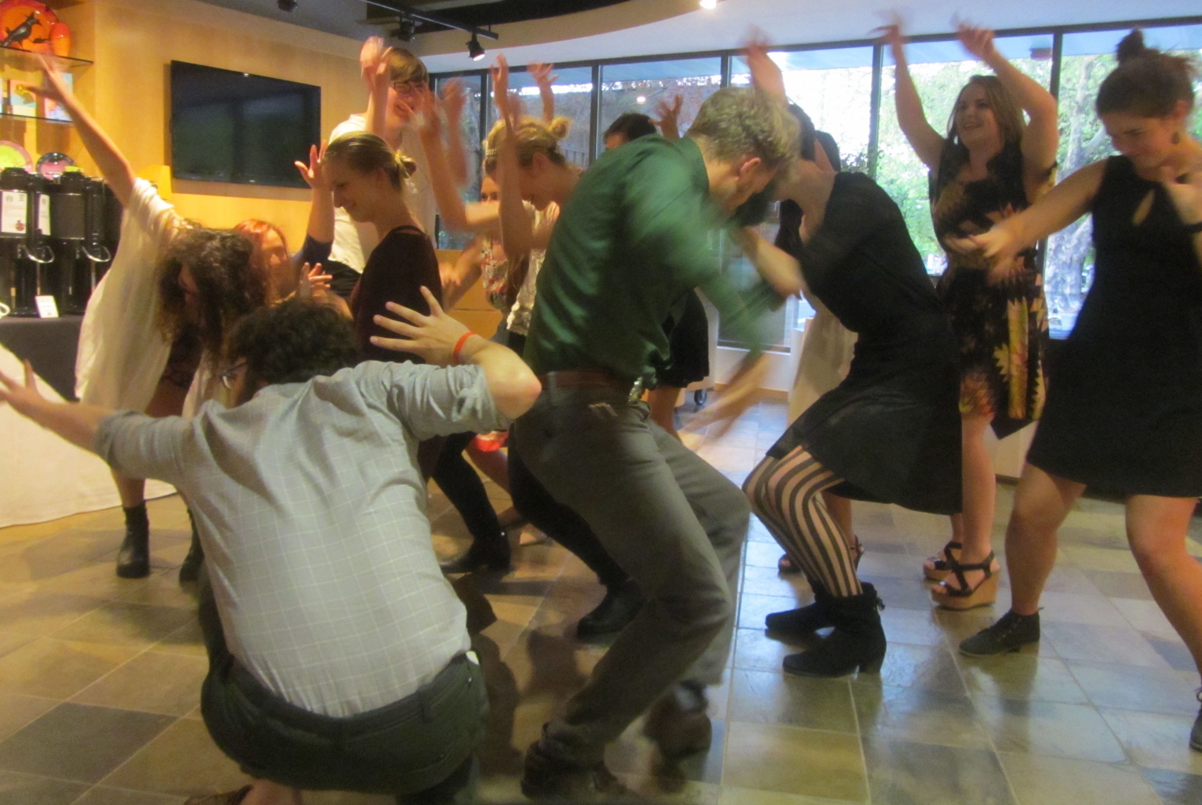 love the derain, and we’re guessing the art students are pantomiming Breugel’s “The Peasant Dance”. : – )