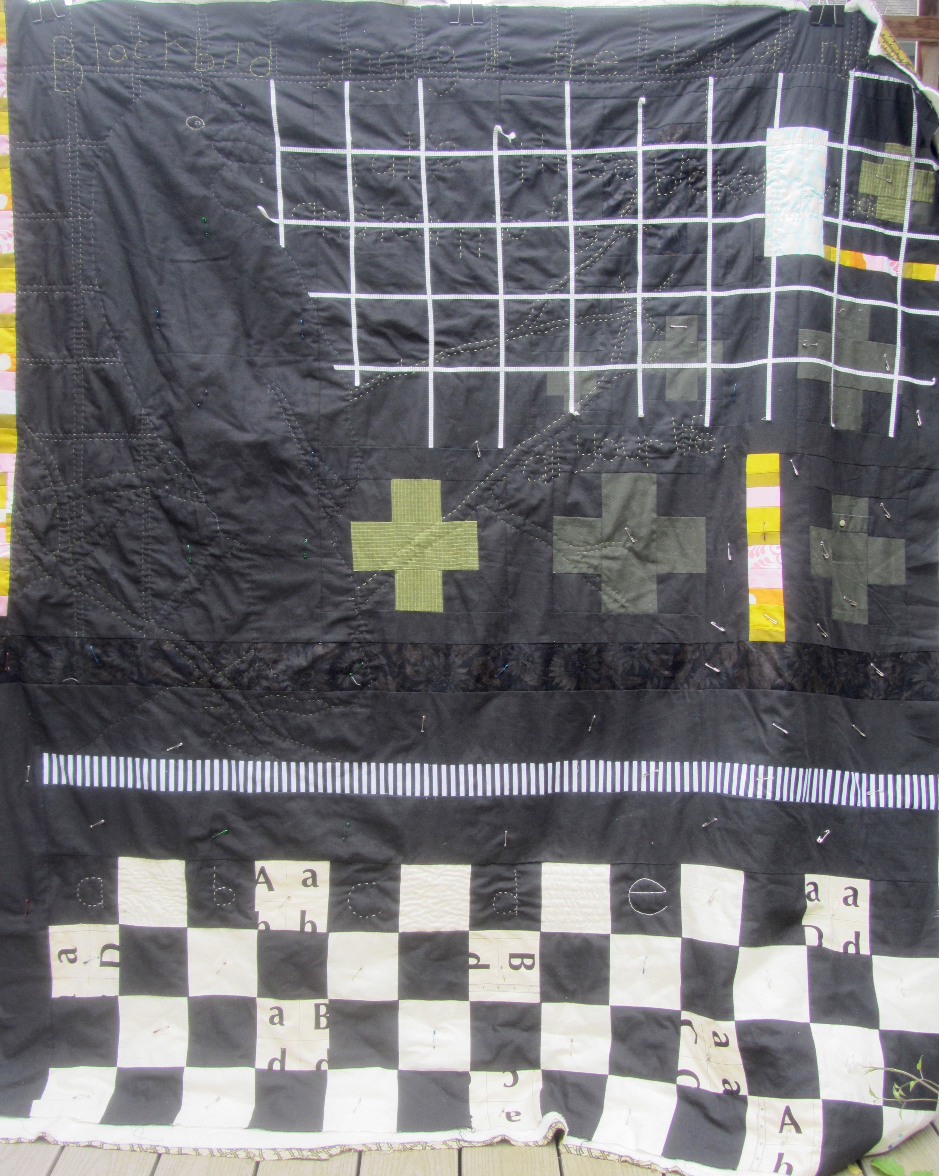 2. The blackbird quilt in its ‘pitiful’ stage is most intriguing, including the white grid! You are surely incapable of ‘ugly’! Happy picnic, you happy two!