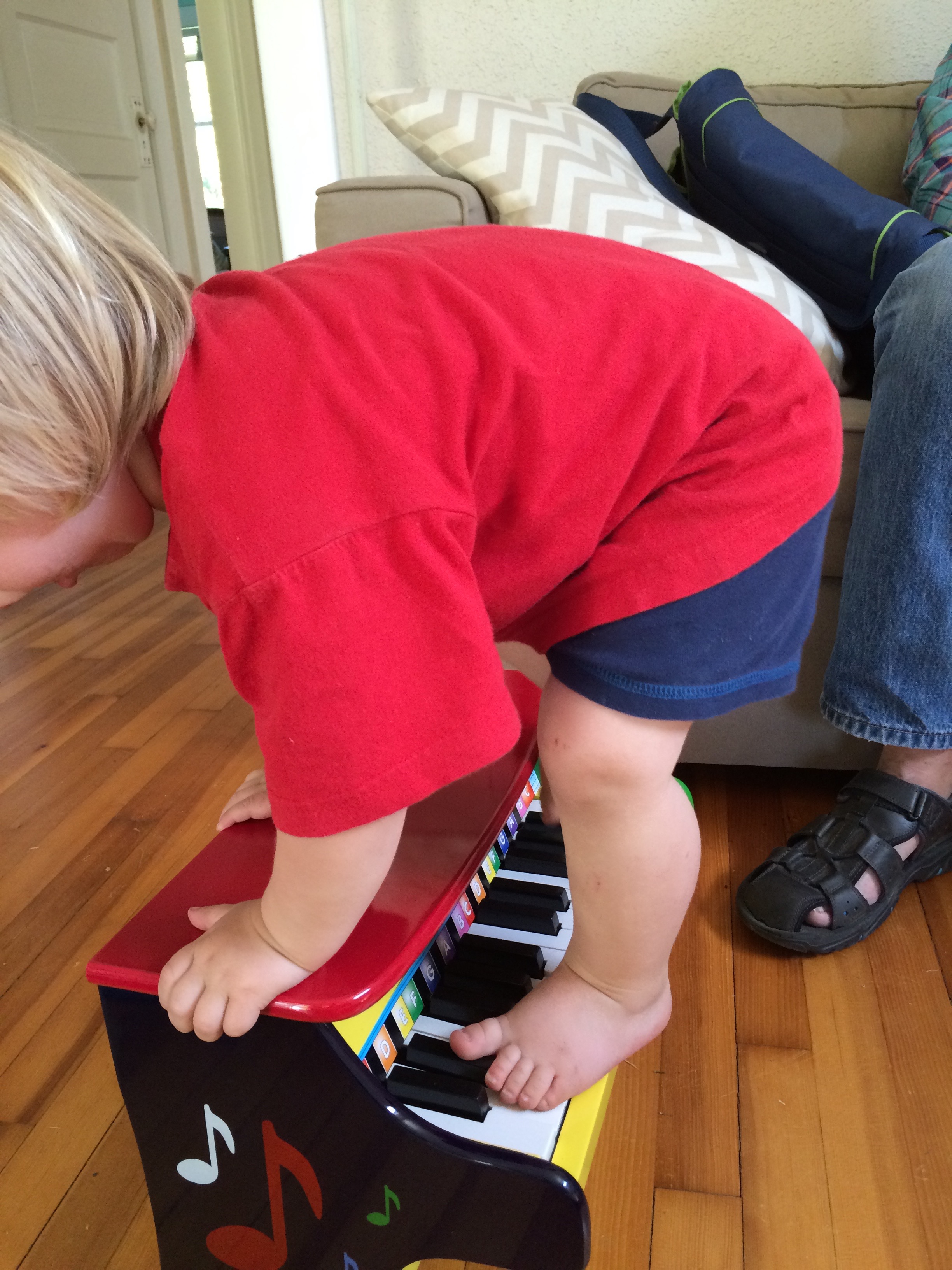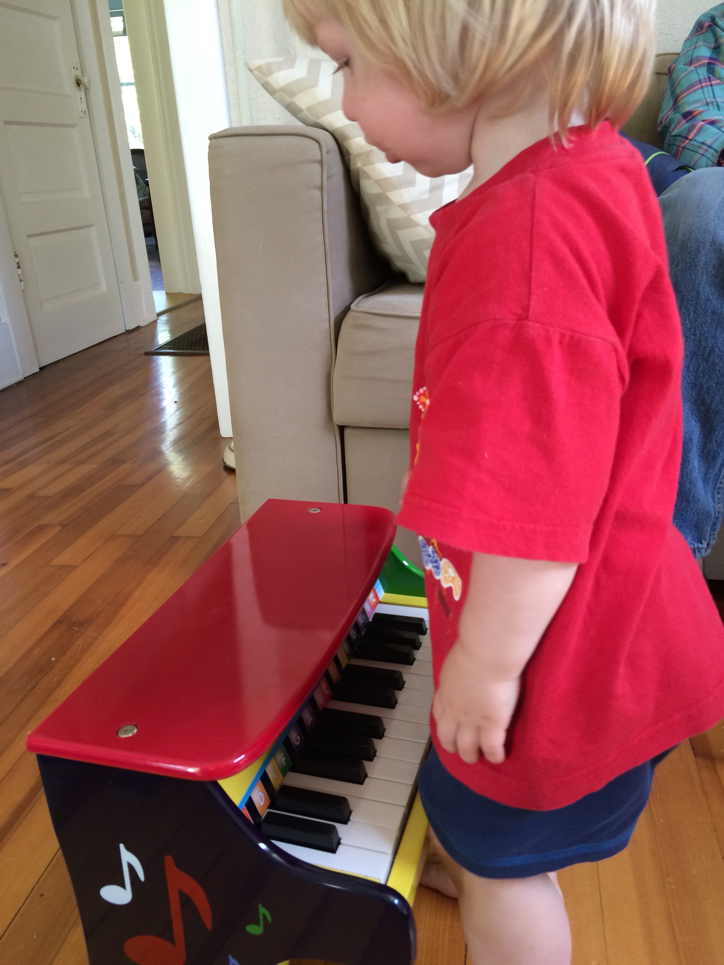 We brought Sidney a “baby grand” and first there was the moment of studying the instrument…