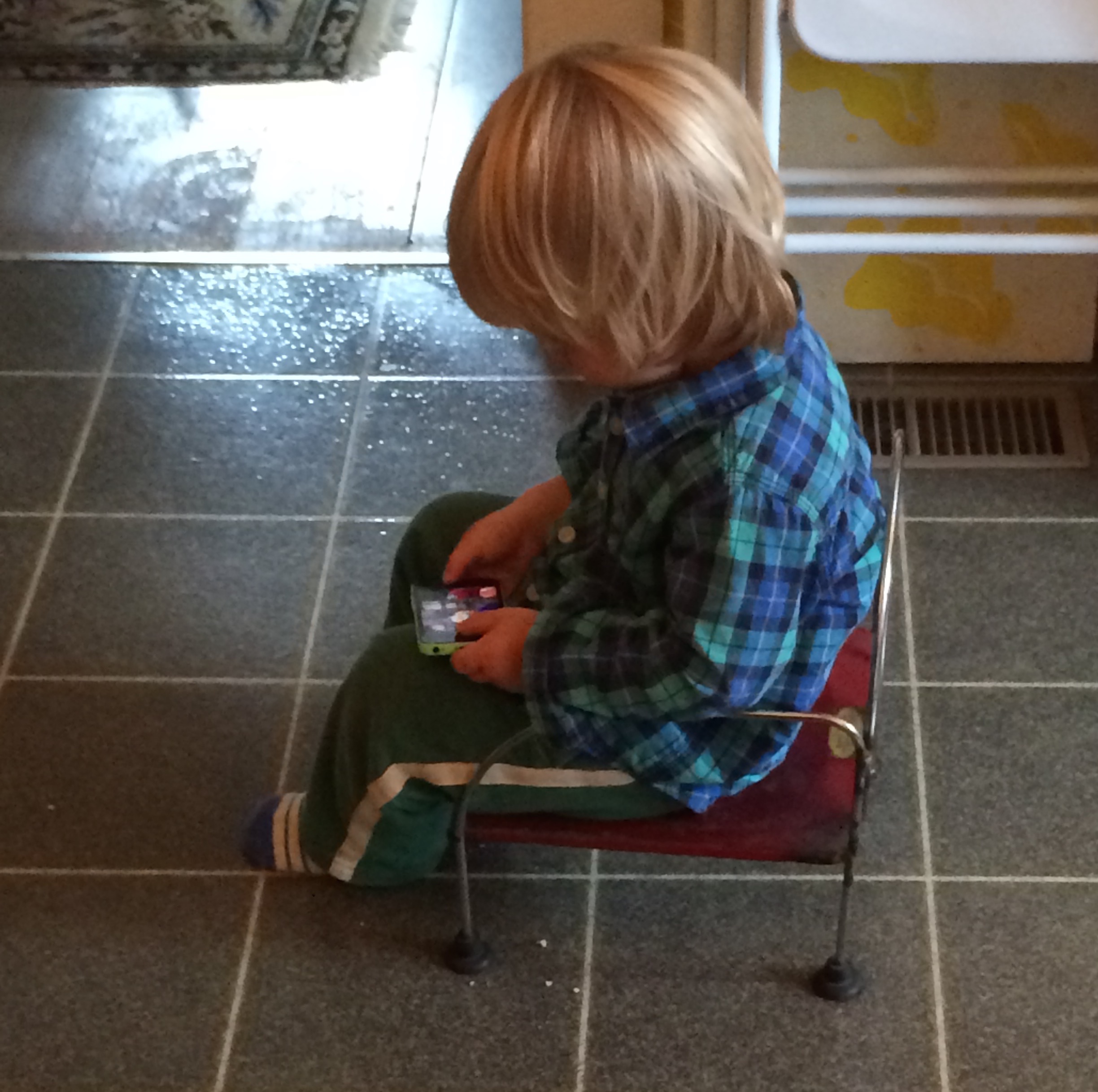 But there were quiet moments…a quick Elmo video while breakfast was cooking…