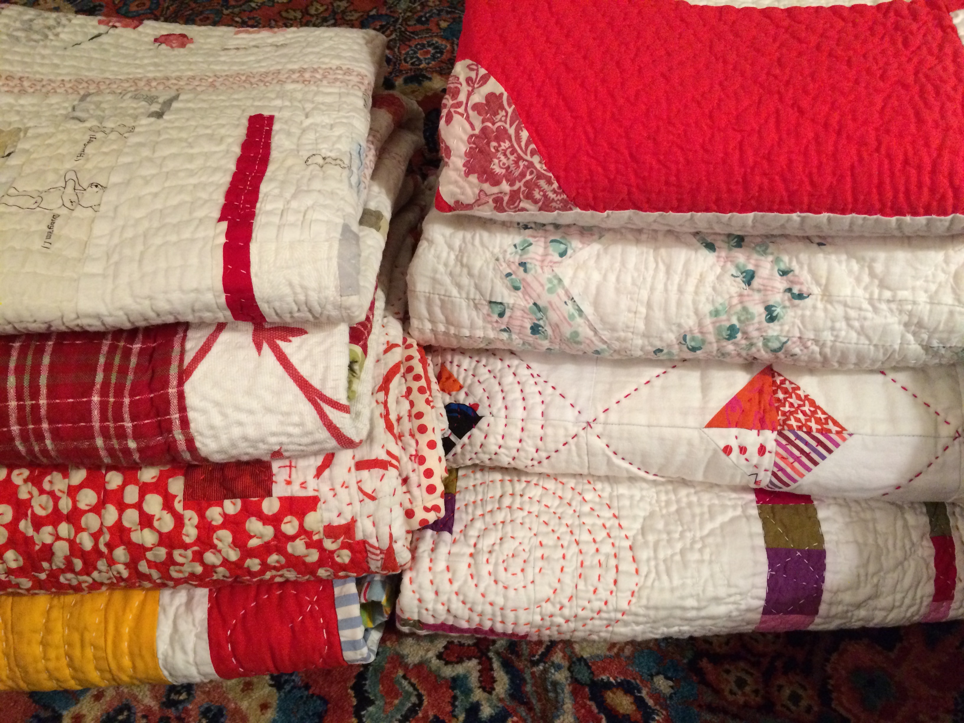 amazing. your quilts are so beautiful and love the stitching. I think my favorite is the one with really big pieces. can’t tell if the fabric is plaid or that’s the quilting. the quilting on the “background” white and red fabric is fab. wish I could be there in person. your talk is going to be wonderful.