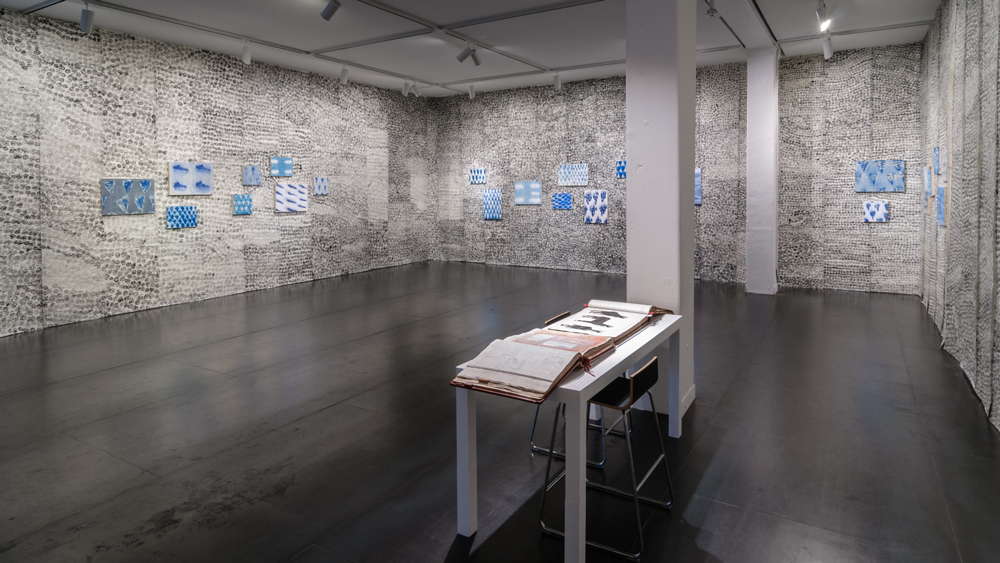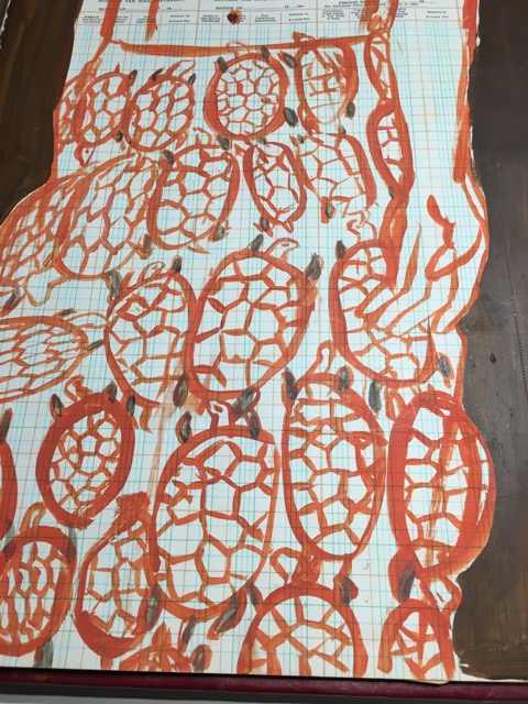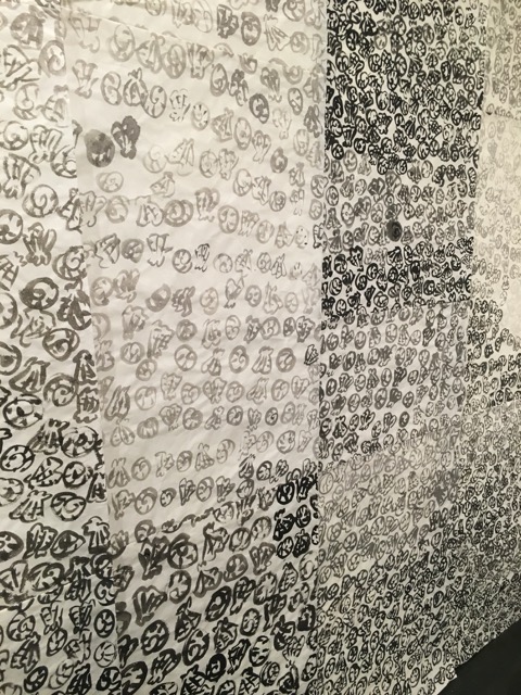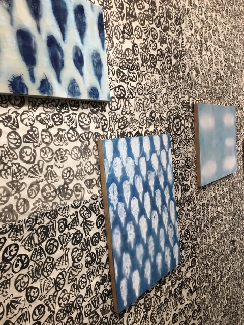One of my new favorite galleries the last couple of years is Upfor Gallery, right next door to PDX and often offering shows that knock me out…this one included. A few years ago I was reading the New York Times one morning when I read an art review of a show at the Corvallis Art Center…whaaat? Yep, Julie Green’s Last supper series which was amazing…as I describe here. This new show…”My New Blue Friends” is soo soo wonderful. It starts with the “wall paper”…all around the entire gallery, sumi drawings of shells on rice paper. She does some everyday, and has been doing this meditation since 2011. They begin tight and dark and loosen as they go