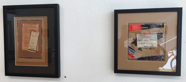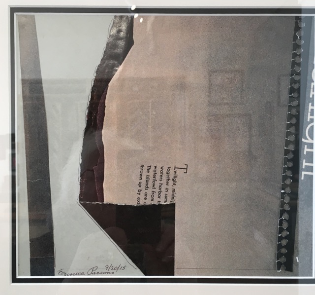 After a romp in the leaves we headed to Belmont Street to Luke Dolkas’ Frame shop where the work of collage artist Eunice Parsons was on view. Eunice continues to make wonderful work now into her 100th year. I was lucky enough to show with her back in 2009 and consider her a friend. The morning turned very sunny and Luke’s shop is flooded with light so my photos don’t do the work justice…go take a look…