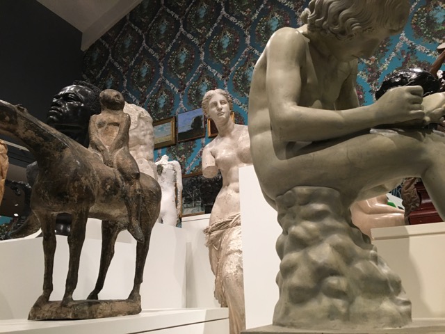 and then off to the Portland Art Museum for a leisurely stroll…starting with the atrium massing items from the museum’s collections with paintings wittily paired. In the center a jumble of sculpture