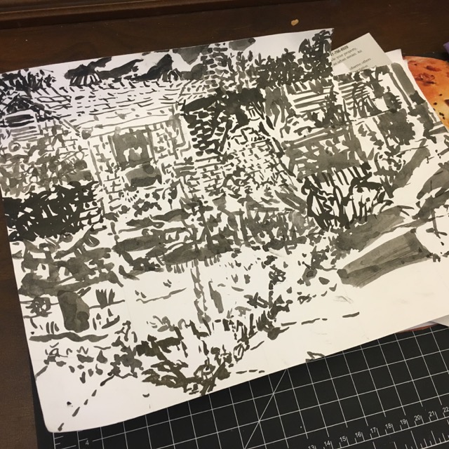 but of course she’s doing some meditative drawing (a corner of her morning view)…