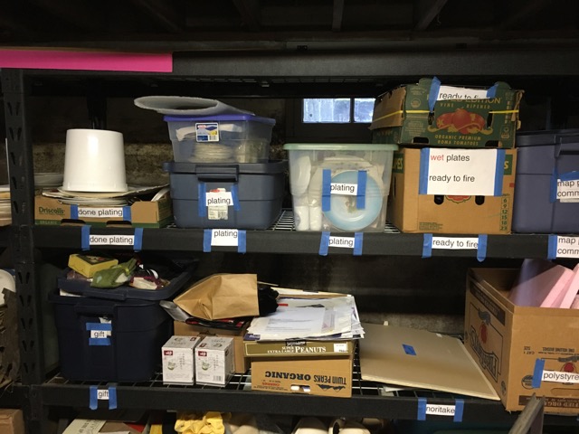 before heading to the basement…domain of the last supper plates. Julie Green is an organized thinker and art-maker, clearly reflected in her basement studio.