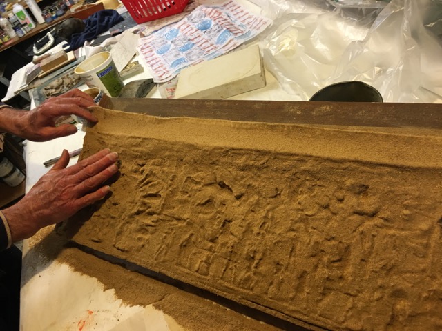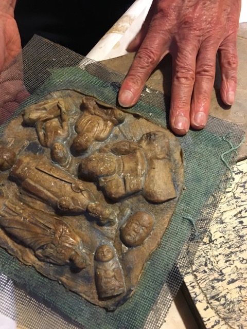 in the basement studio he’s doing some mold-making…