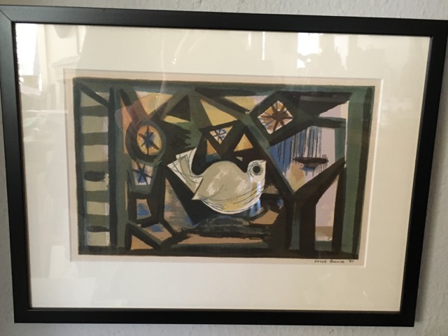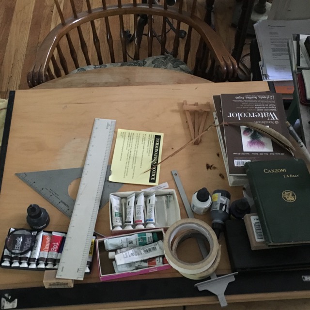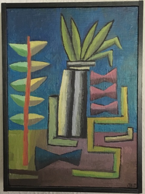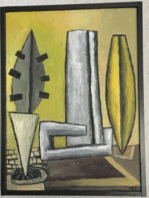 And by that I mean the verb, not the noun. I consider it one of the real privileges I have to tag along with R when he’s off to interview an artist (future interviewees–I don’t always go, only sometimes.)…we smile and chat, he goes into to interview mode and I look and look. All good. So we went to visit the painter Jackie Johnson the other day for R to talk to her about her remembrances of Louis Bunce, current biographical and curatorial subject of Roger Hull’s work. I consider Jackie a friend so I got to go along…in the entry the last piece she made after almost 20 years in New York and the first piece she made after her return to Portland…