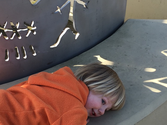 Back in 2011 R and I went to the first of the Maya Lin “Confluence” pieces at Cape Disappointment. Last week on Sidney day we visited the second piece we have seen in Vancouver, WA…the “Land Bridge” and we liked it just as much.