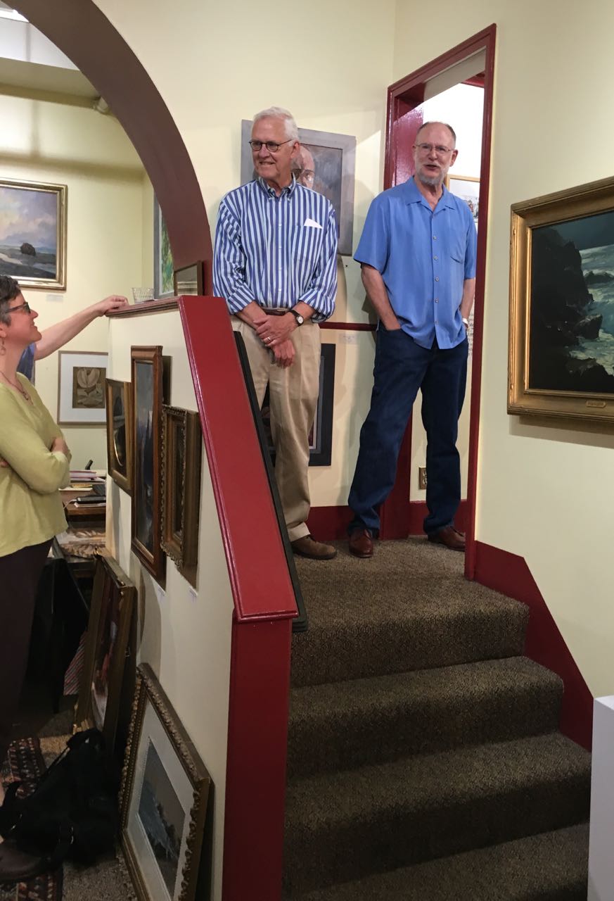 The first in quite a string of events this summer featuring the work of Corvallis painter/print-maker Nelson Sandgren happened last Saturday.  In conjunction with the exhibition opening June 14th at the Hallie Ford Museum of Art in Salem, Michael Parsons also is featuring the Work of Sandgren this month in his Portland gallery (716 SW Madison Street), and to kick off his show he asked curator/historian Roger Hull and painter/son of Nelson Sandgren Erik Sandgren to give “remarks.”  It was a beautiful sunny Saturday and many people turned up at the gallery, which got very stuffy…and NOT from the remarks!