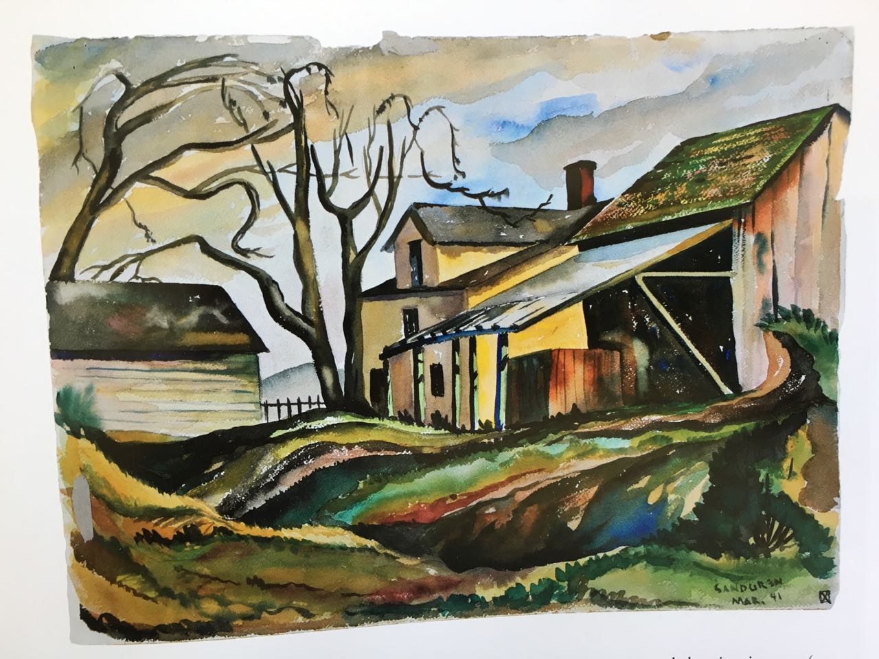 R was writing this book and doing research for a forthcoming book on Louis Bunce this year, and noticed how often Bunce and Sandgren were in the same shows near the mid-century…they visited each others studios and had a dialog which you can sometimes see in the work (here Bunce on the left, Sandgren on the right).