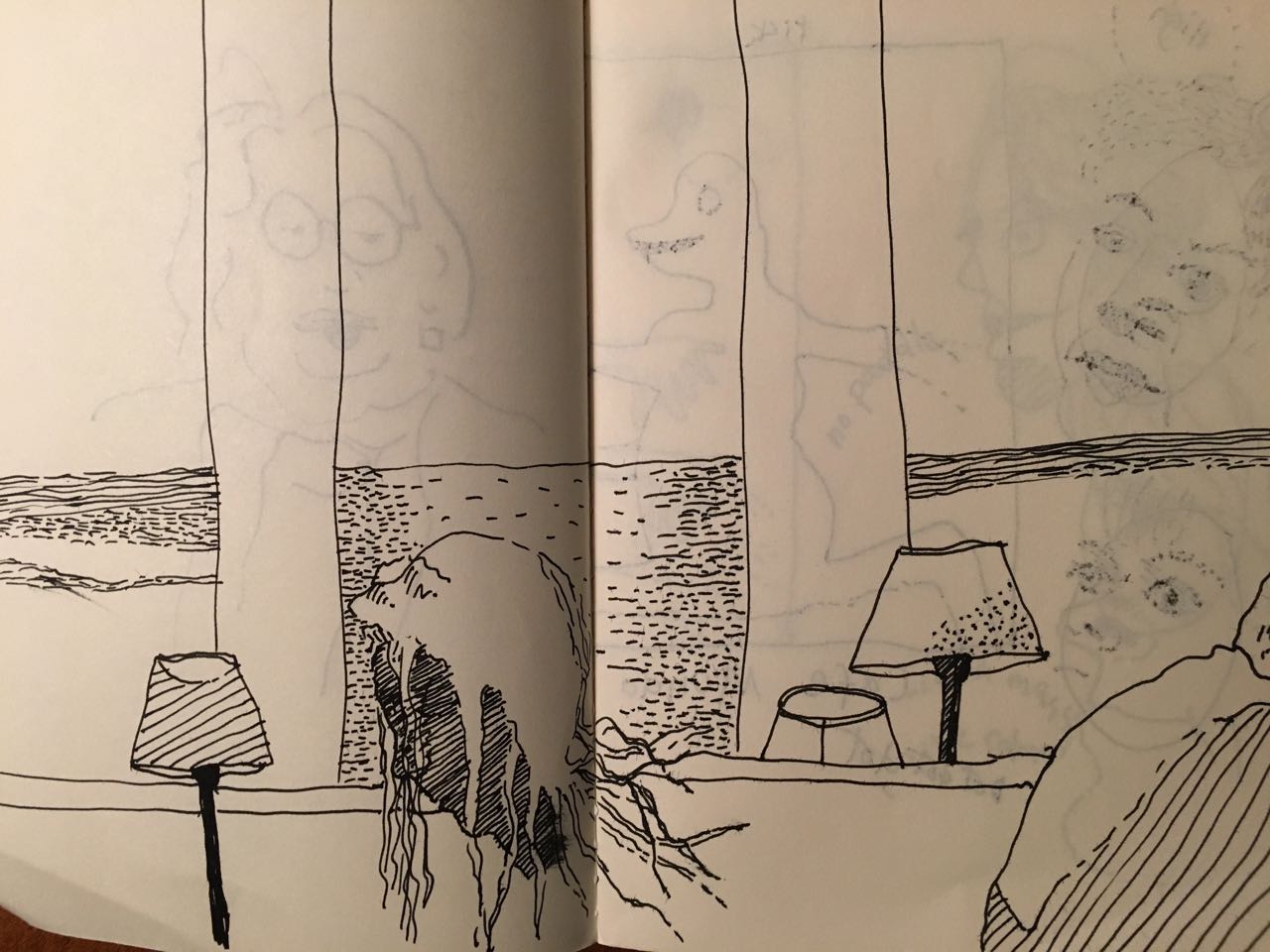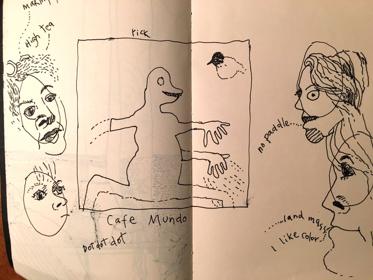 my personal fav of your drawings, bonnie, is the one at kylos with all the subtle reflections of faces in the window. we’ve never eaten at any of the 3 places you gals went to. is the food good as well as the vibe and/or views?