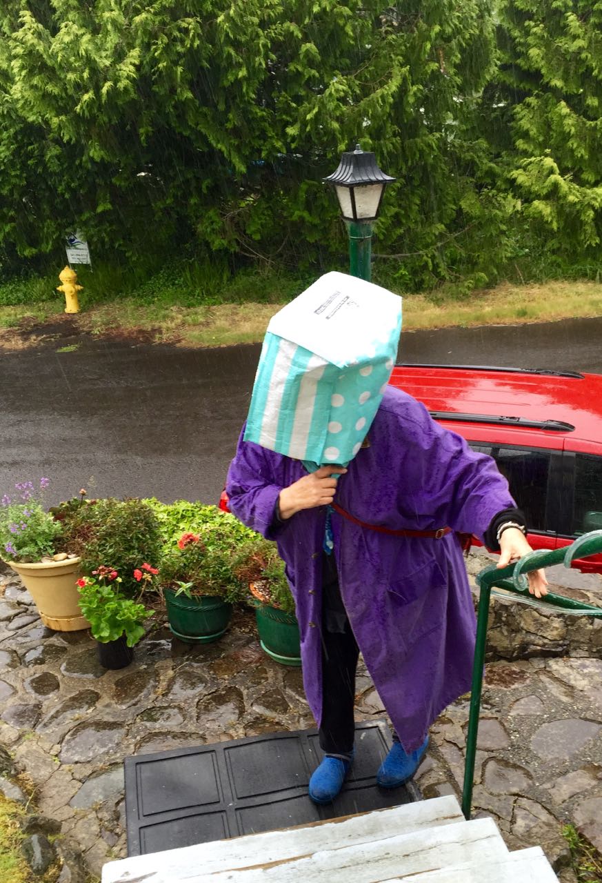 and then day three the rains started in earnest causing the necessity for creative rainwear…