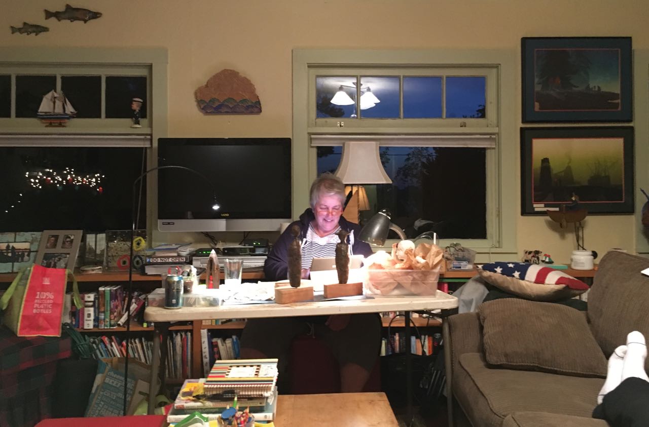 We get together monthly, often to make work, sometimes for a brief road trip. A couple of times every year we “retreat” for four or so days to work and talk…but mostly work. And eat…going out for dinner at the end of long work days is restorative, and at the beach we chose places with a good view or with good karma.