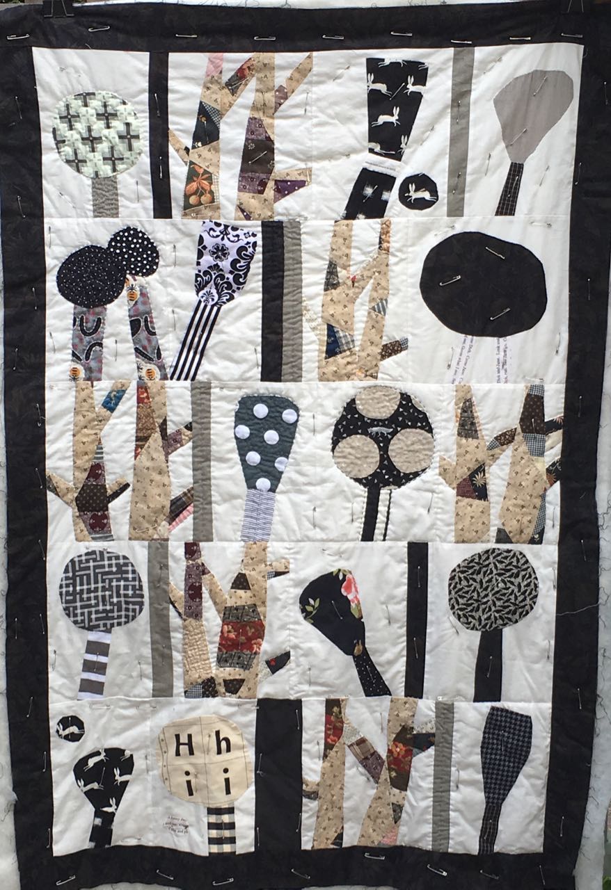 I told the class about the one and only time I was going to use fusible backing and bonded the fusible to my ironing board cover…all pins and thread San…all pins and thread…