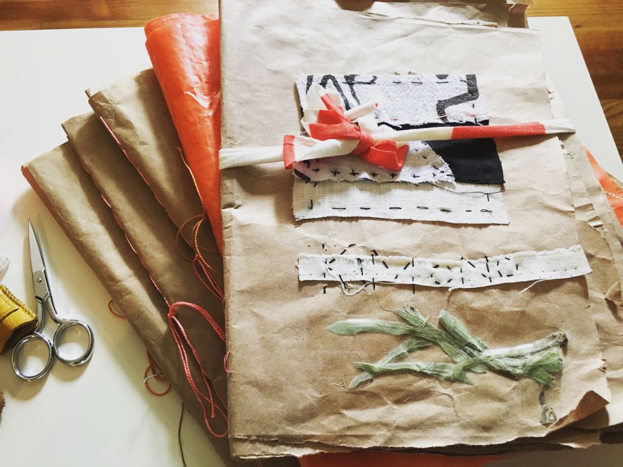 and the task at hand was to make a kimono. I was more interested in her ideas of making notational books, and began to develop the idea of “workbooks” as I slouch toward “Art Laundry” (stay tuned for that one…) and so…voila, the kimono work book was the end result of my 2 1/2 hours of work…