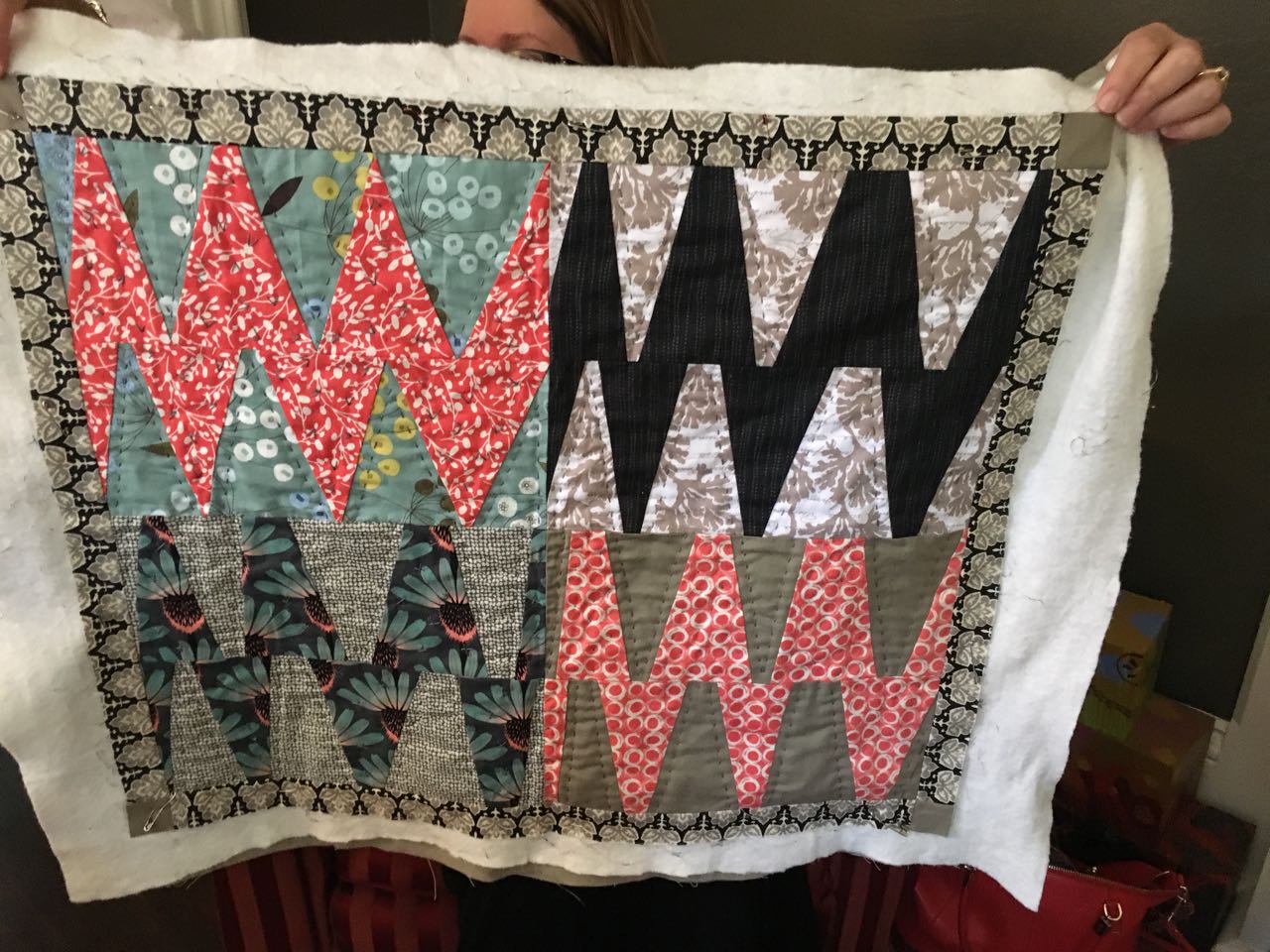 Quilt group met at our house this week for the “reveal”…all the things we made from Kate’s “ugly fabric” give-away last December (the fabric she gave us wasn’t ugly really…it was the color of a mouse)…true to form the projects were as different as the makers…and just as nice…