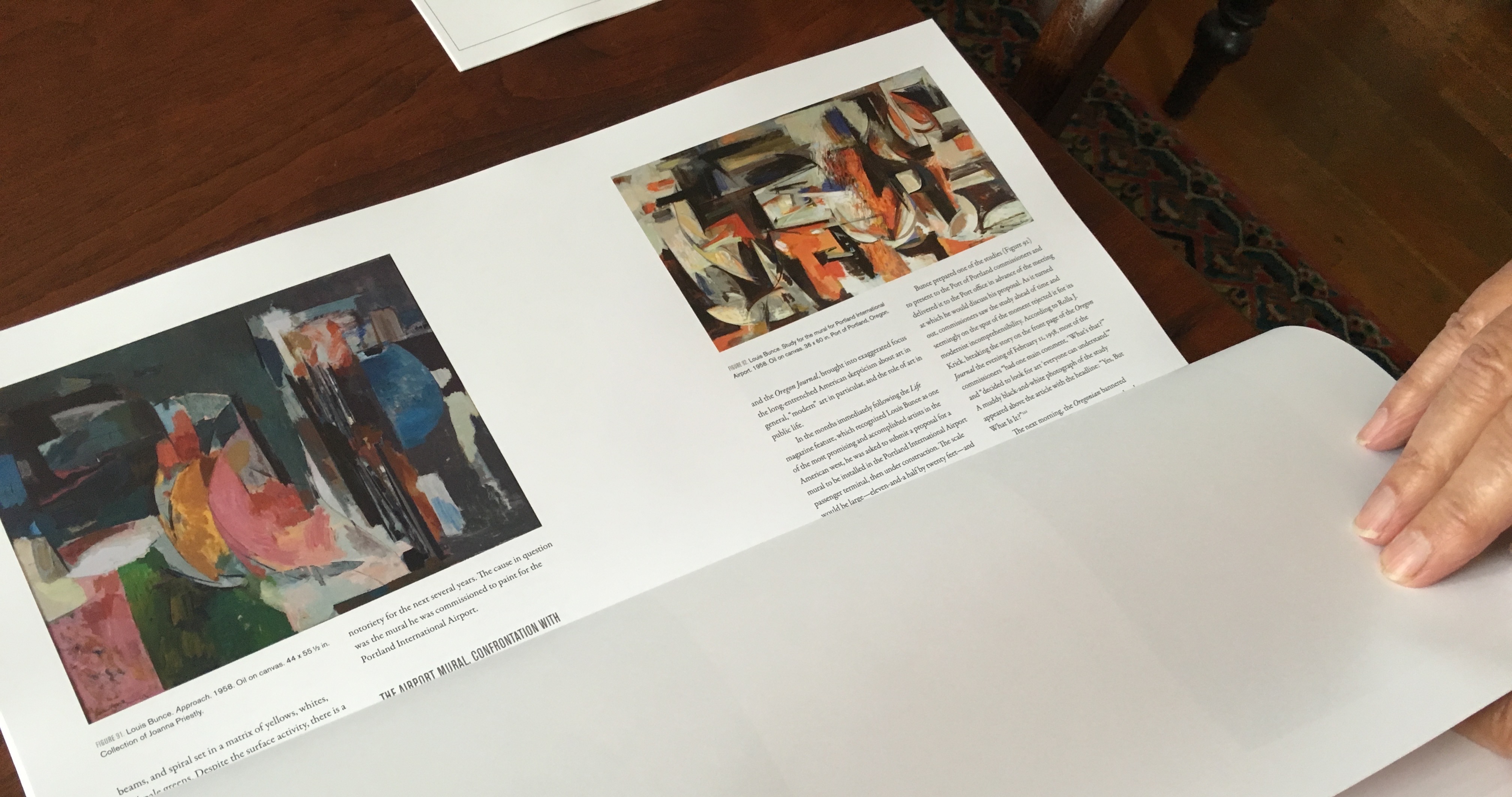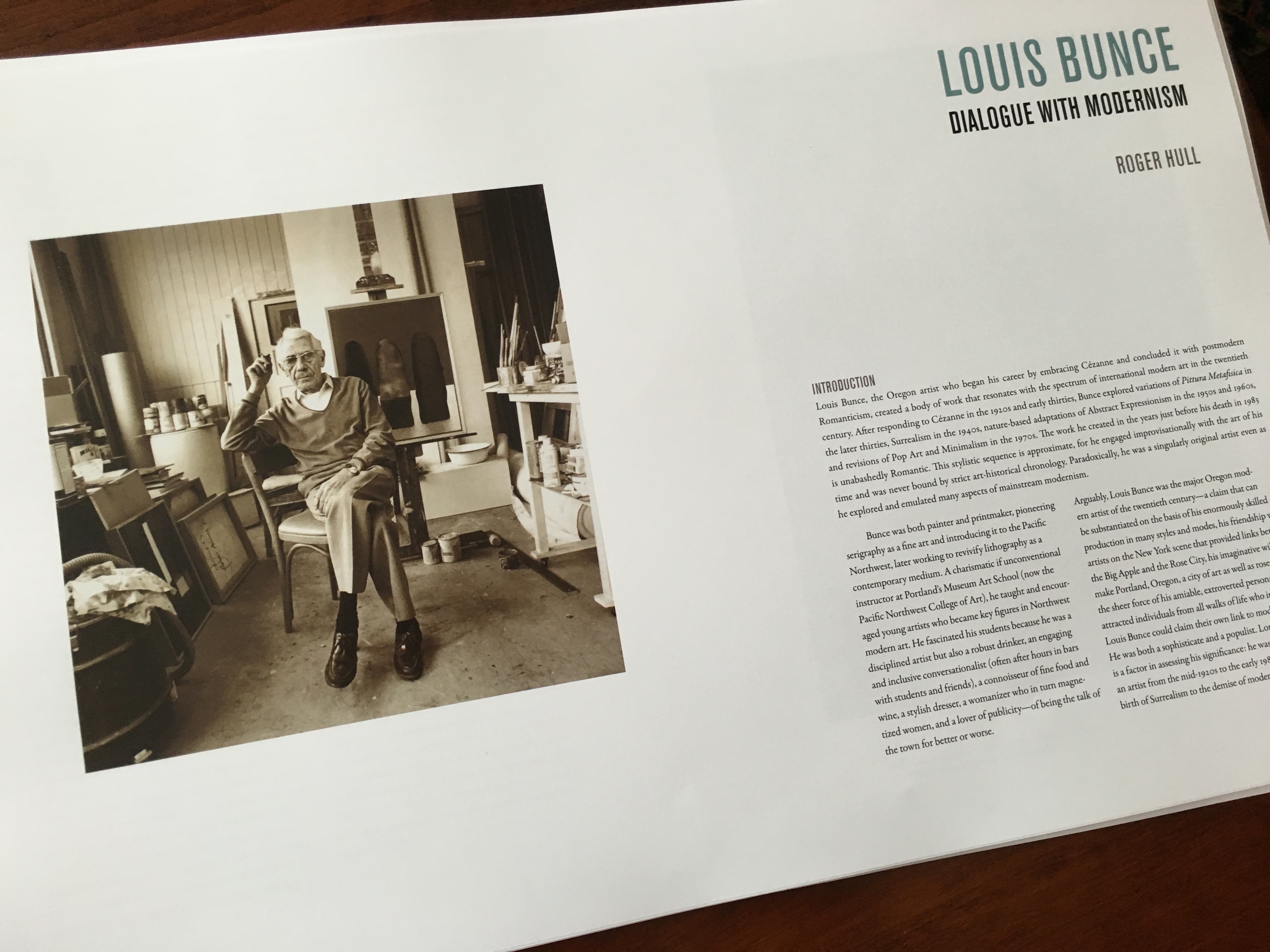 Roger Hull has been researching, writing, interviewing and thinking about the Portland modernist painter Louis Bunce for 3 years, at least. As usual I’ve had the most interesting time tagging along to lenders, archives, museums and galleries as Roger pulled together the story of Bunce’s life and work…a VERY fascinating story. The book, “Louis Bunce: Dialogue with Modernism” is written, and yesterday the proofs arrived from the designer. As many times as this has happened, and this is the ninth book about regional art and artists that he has written, this moment of the box arriving (nowadays from Fed-ex) is always exciting. Of course these days there’s a PDF but Roger always prefers to have one hard copy for a final edit. Here’s a sneak preview….