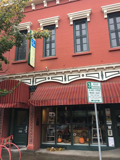 Sometime in the 1960’s the brick was covered over with this sort of modeled stucco stuff which covered all the windows. The black and white design motif under the cornice beneath the windows is actually part of the original cast iron front of the building (the cast iron made by the Oregon Iron Works in Portland, and thought to be among the oldest examples still existing in Oregon…). The other half of the building was restored in the 1990’s by Robert Kraft and the second floor was a lovely residence apartment running the full depth of the building. Kraft carefully restored the exterior to its historic look.