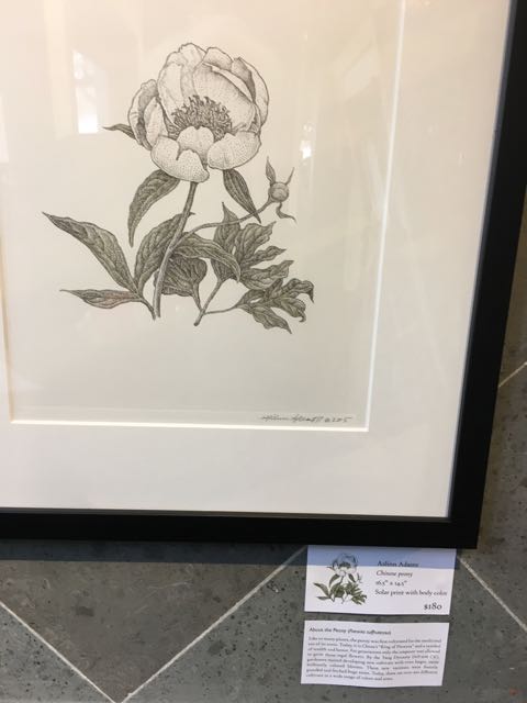 which took my breath away. There were tree peonies in evidence everywhere, though not in bloom until May. Around the grounds in various of the buildings was a temporary show of botanical drawings which were beautiful and I delighted to find several by my neighbor Aislinn Adams, including this one (sorry about the photo Aislinn)…