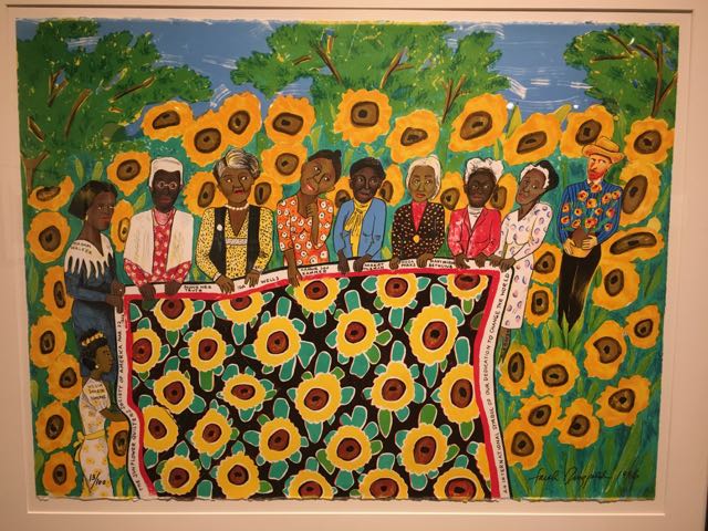 and hanging with these is a perennial favorite from the museum collection…a lithograph by Faith Ringgold “The Sunflower Quilting Bee at Arles”…