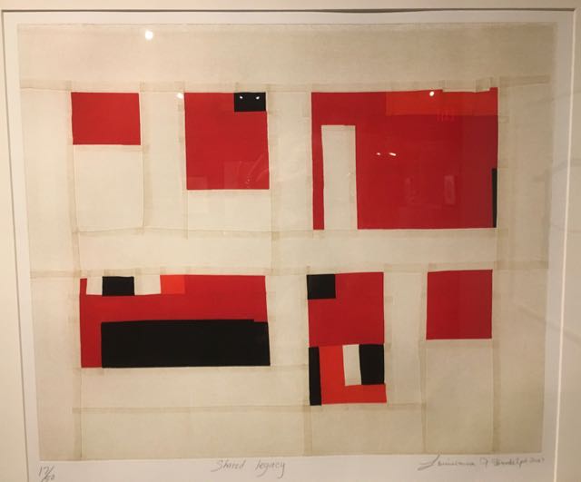 While in the Hallie Ford Museum of Art the other day I went up to the corner on the second floor where new work is often shown, and found these three nice prints, gifts of Greg Kucera and Larry Yocom of Seattle.  Collections Curator Jonathan Bucci had alerted me to the Louisiana Bendolph print “Shared Legacy” which was donated in honor of artist Marie Watt.  I had seen the show of Gee’s Bend prints back in 2000 or so at Kucera’s Seattle Gallery but had forgotten how really nice they are…certainly referencing the Gee’s Bend Quilts but also Korean pojagi construction.