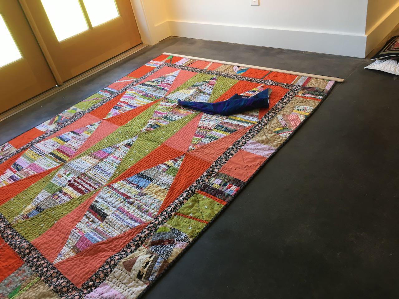 Salem artist/quilter Kate Speckman is doing a five week AIR at The Annex in Salem, She is interested in setting aside some time to think about future quilting projects, especially delving into the ideas of traditional patterns from carpets and how this might translate into her quilting work. She got her sewing machine set up last week and today we put up a show of quilts in the Annex which will be up until June 8th. Kate will be in the studio working Tuesday through Friday from 10:00 a.m. to 2:00 p.m. and welcomes visitors.