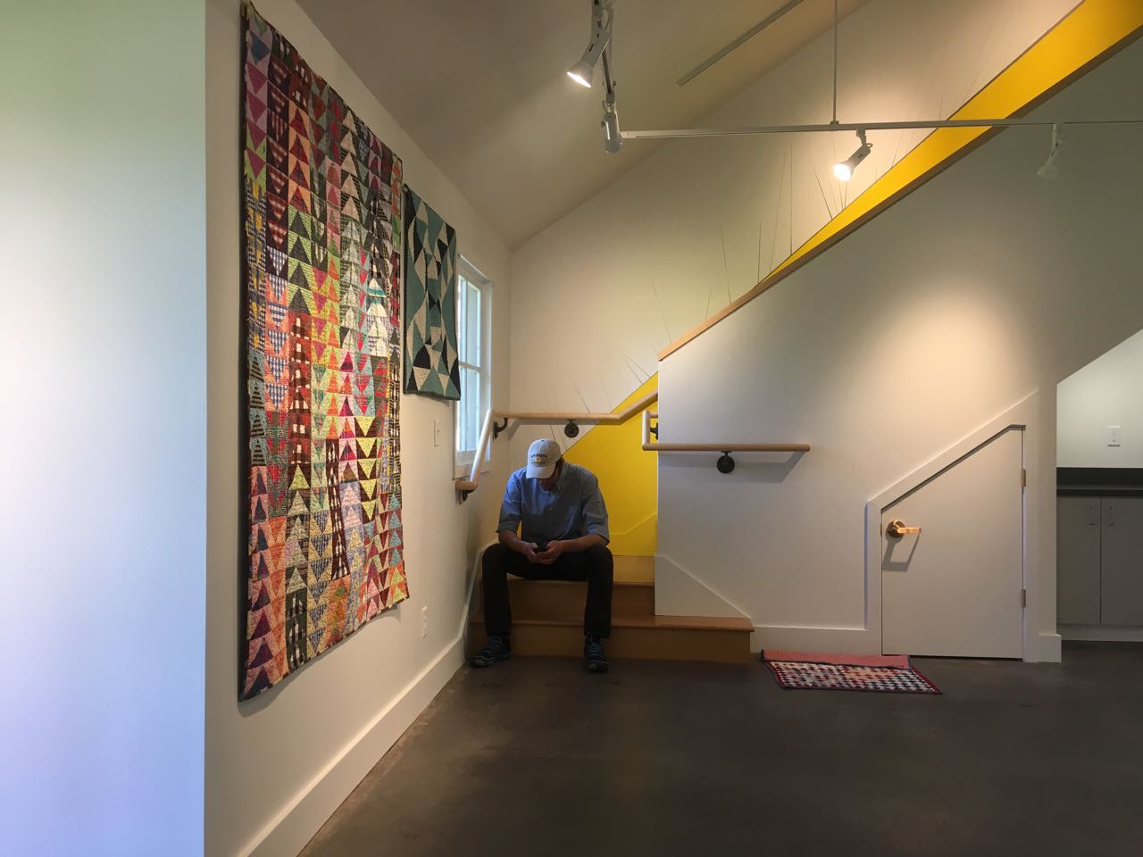 We began the “ladder wall”…a couple of years ago Kate took apart an old ladder to use in her home studio to display quilts and she was pretty sure the ladders would work into the show…