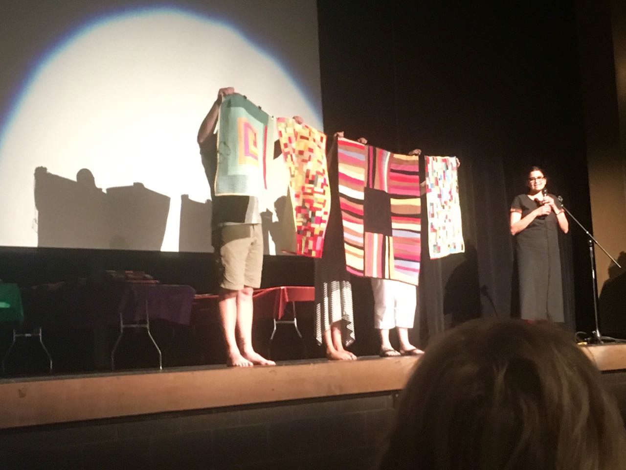 We heard Sujata speak, we heard the quilter Joe Cunningham speak (after playing some walking-around-quilter blues) and other famous people…then the quilt show…all photo failures…