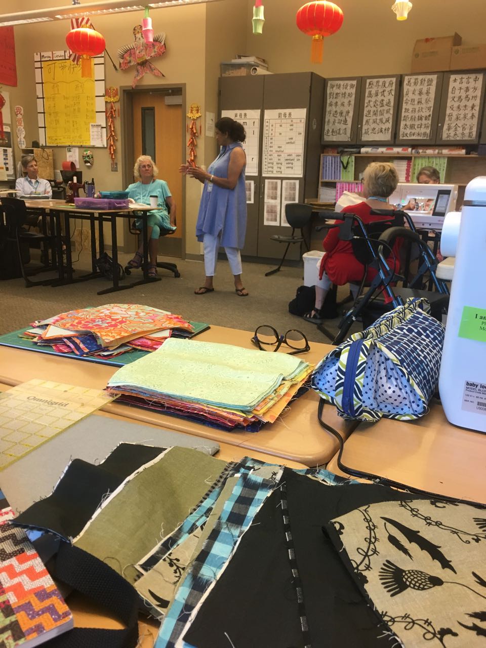 It was fun catching up with Sujata at lunch, and in the afternoon the quilt tops started to materialize…