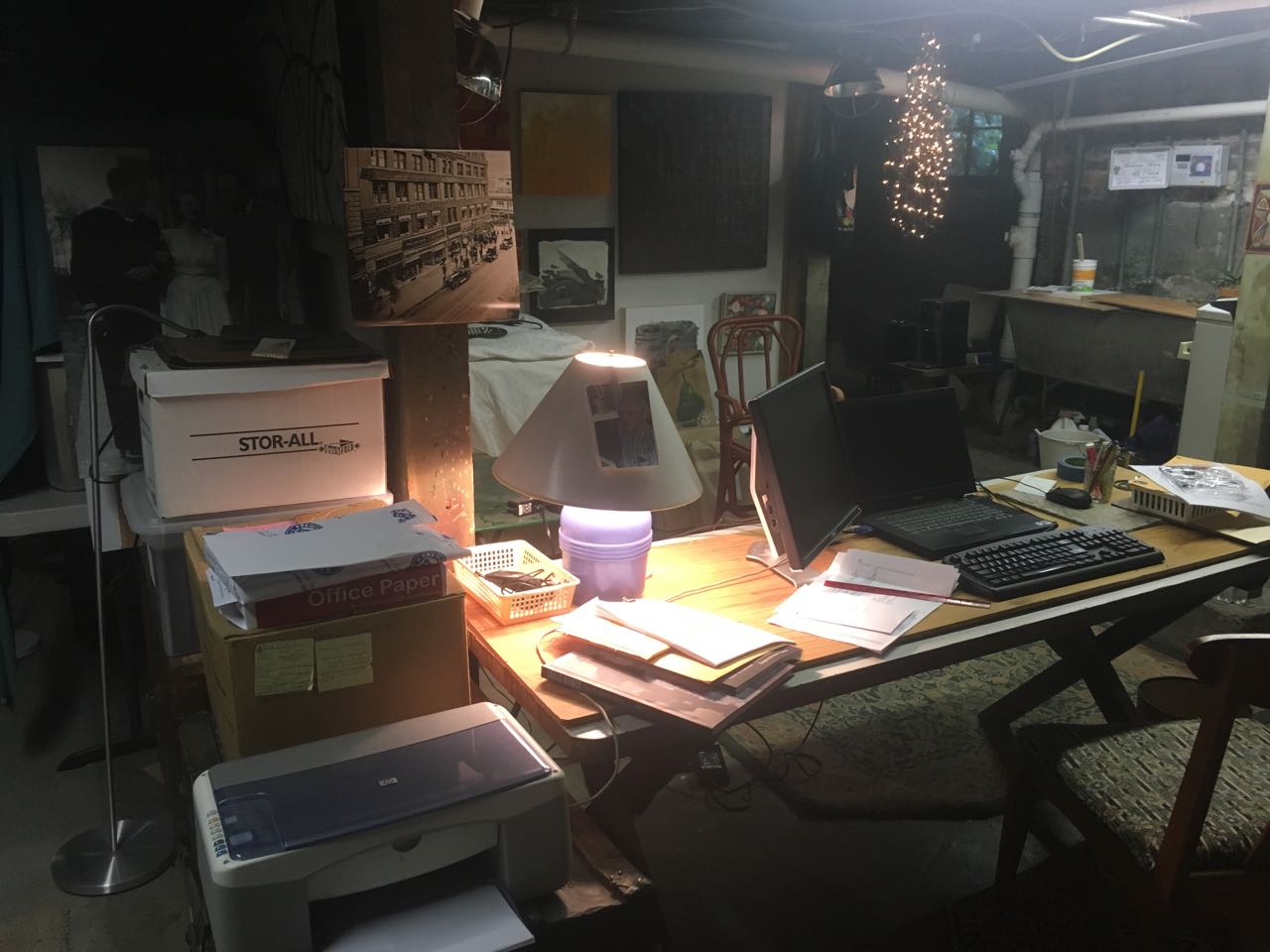 But…it’s summer and we don’t have AC…so when the fan and Lee Imonen’s “Basket” study fail to cool, down we go to the basement summer office…
