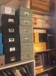 brilliant 2 monitor acquisition. roger’s monograph prose reveals not only an intimate, natural tongue for language but an eye trained on staring at an image and then bringing back for others what can be seen if really looking. a writer writing about images having the digital image in one screen and the other screen for the words that come must feel, next to having the physical presence of the art, blessed. and 2 work spaces, one for cool and one for hot days. and all the paraphernalia. carousel transvue 140 slide tray boxes! somebody’s parents (roger’s?) with a young man in a sailor uniform. a woody allen look-a-like wildly brush stroked portrait painted by an eager, young, admiring student. and so much more, including a tremendous rescue quilt find! how many have you rescued, bonnie? you two are the bomb!