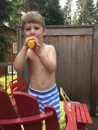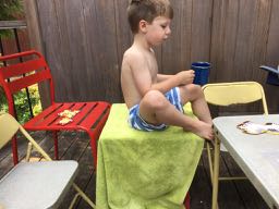 For three years R and I have spent one day a week with our grandson Sidney.  In September Sidney will be in school everyday and our daycare days will end, so these last few “Sidney Days” are precious…this week we had coffee and bubbles on the deck