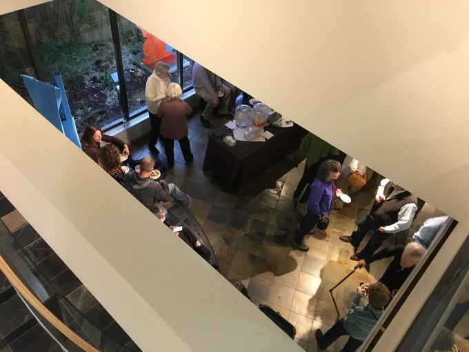 She a writer/artist and he a painter/sculptor. For years they have been making art in Salem, art of a personal and terrific sort. They have a show up “nic & sloy: Side by Side” at the Hallie Ford Museum of art which opened tonight and runs until January 28, 2018. It was a full house tonight