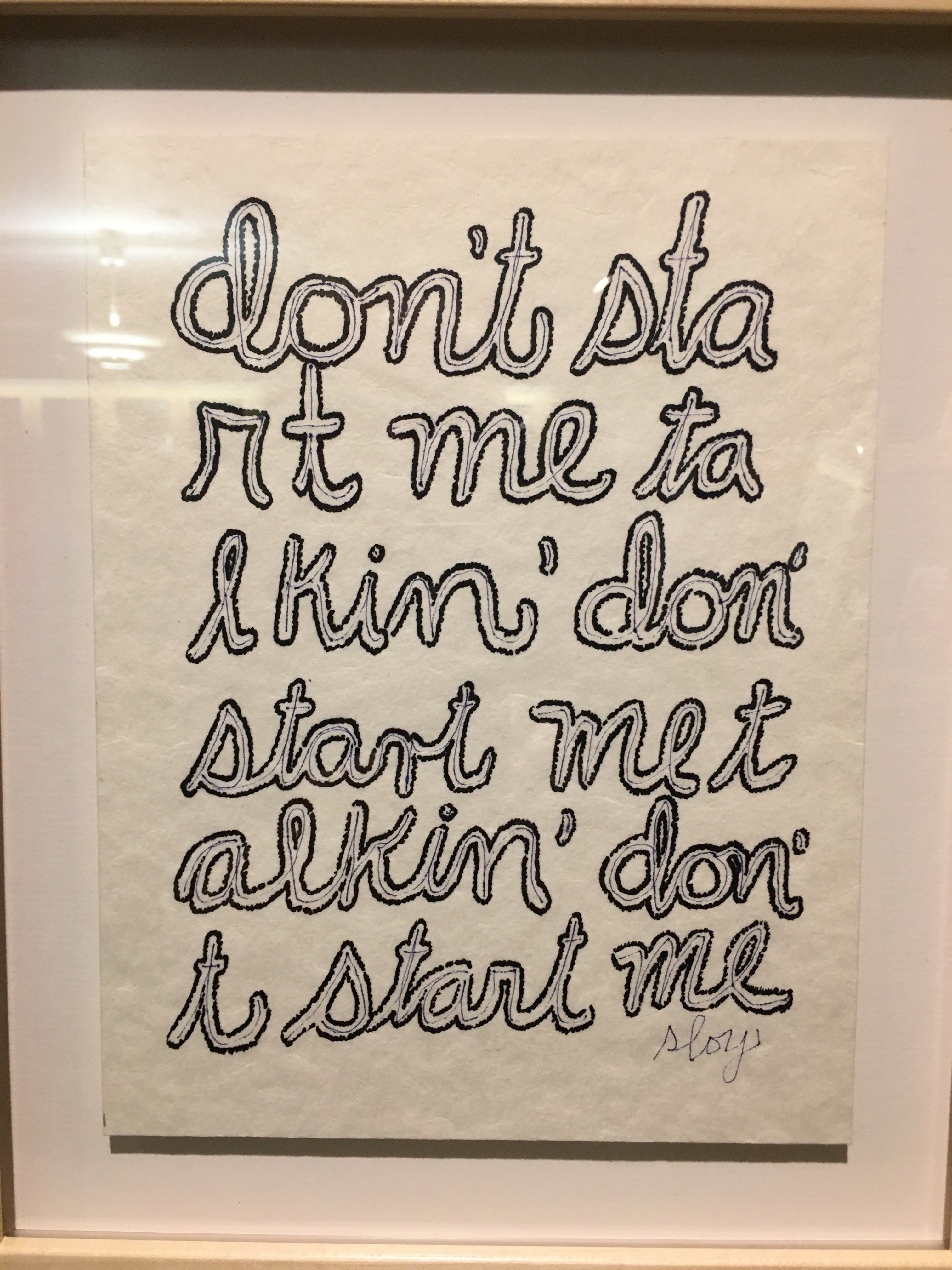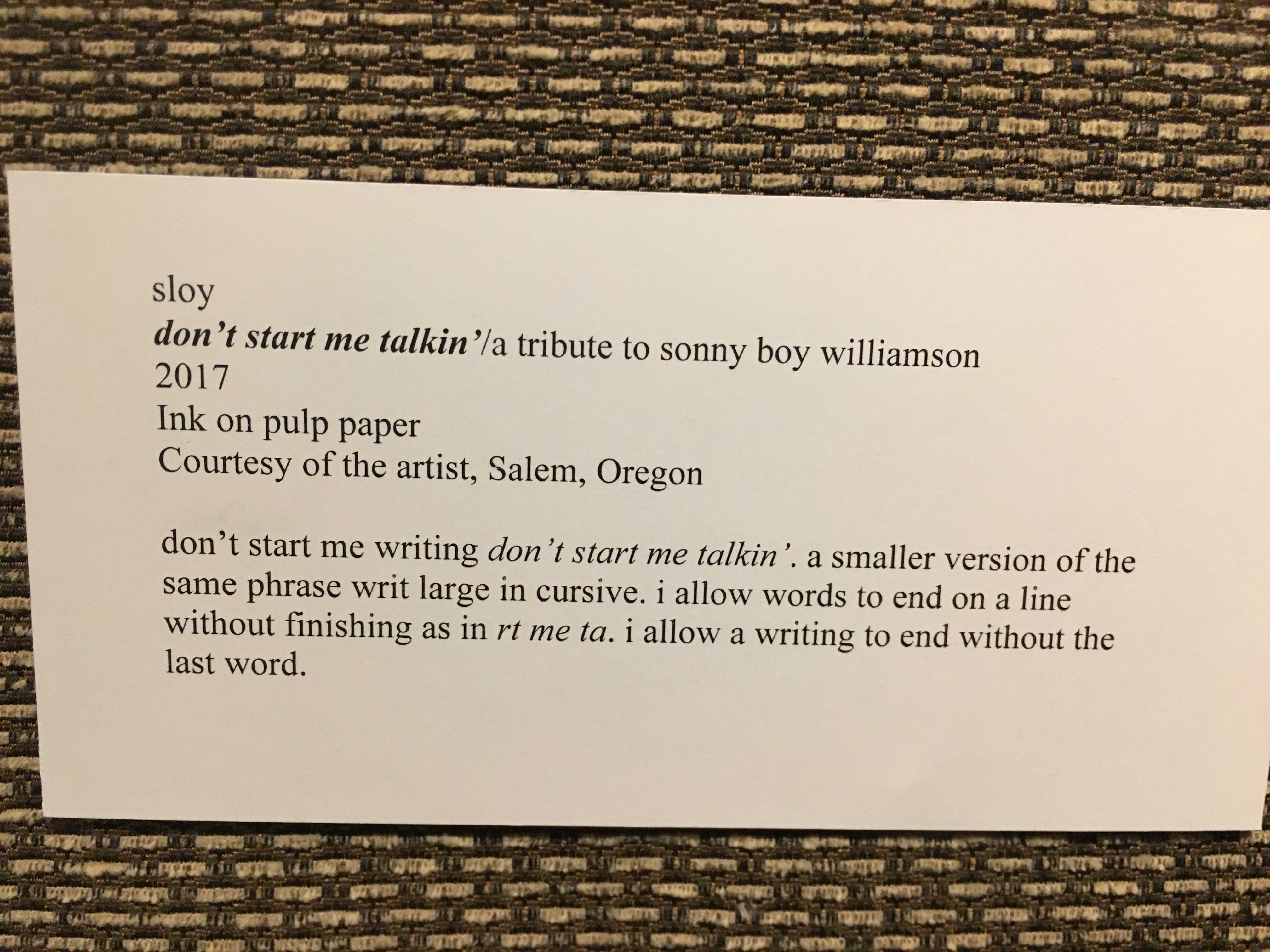 Sandra is a writer, a poet who turned to visual art (this series hits on song lyrics by Sonny Boy Williamson)