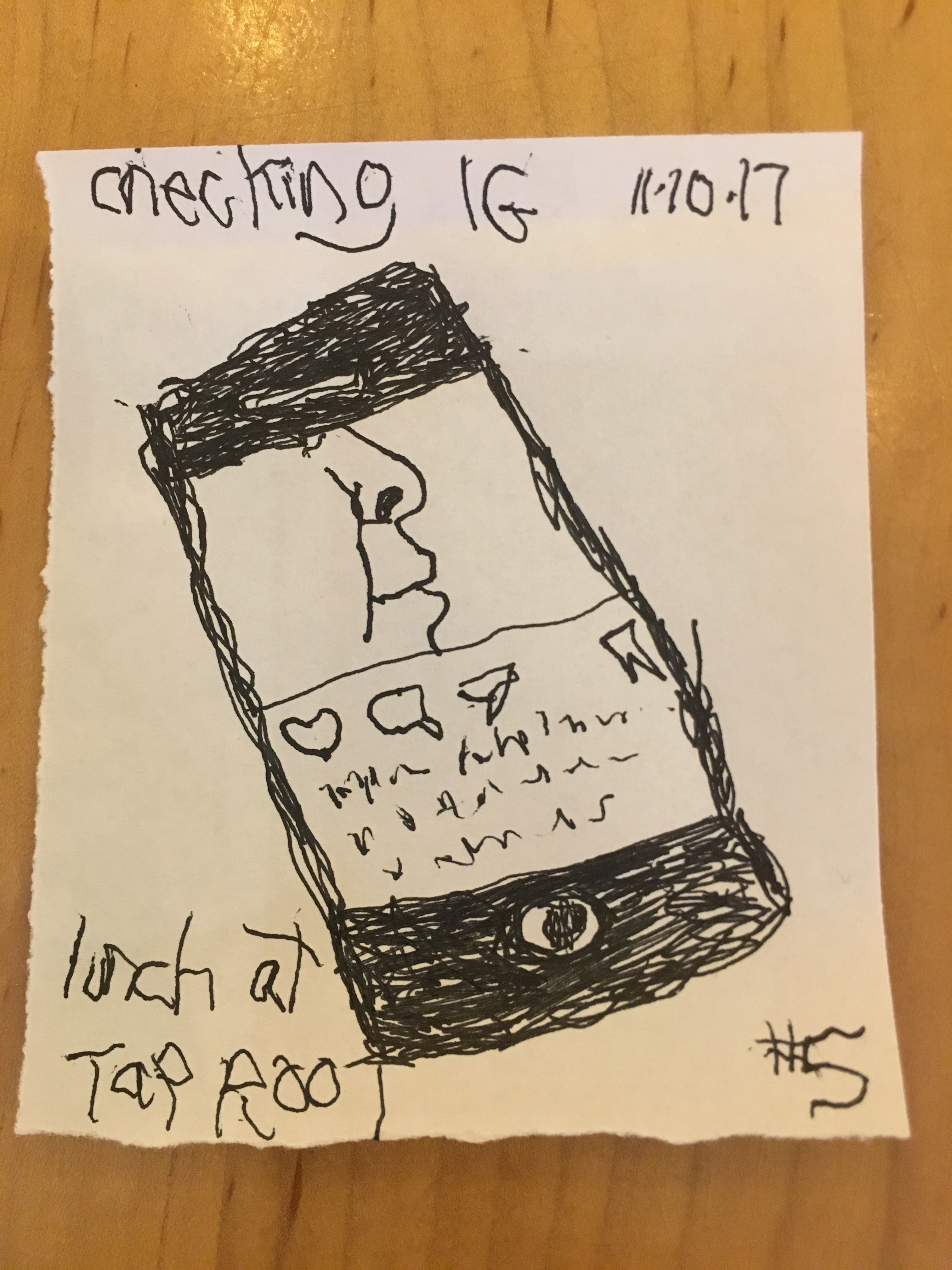 My friend Rex (who prefers to remain AnonyMOuS) told me he was trying to lower his blood pressure by writing a poem with his opposing hand (in his case his right) while taking his BP on his left. Rex often does things like this…he’s a trickster of sorts. Anyway I got thinking about drawing with my left hand…could I? I’m right handed and VERY right handed. A good experiment I thought, so I began the daily exercise. I ripped up a bunch of scrap paper and started making the drawings on small scraps of paper, throwing them in a folder for some later date…like today, maybe. Articles on the internet suggest increased “brain plasticity” and the activation of both sides of the brain for increased creativity…don’t know about that, but I will say I could actually feel my poor brain CREAKING with the effort.