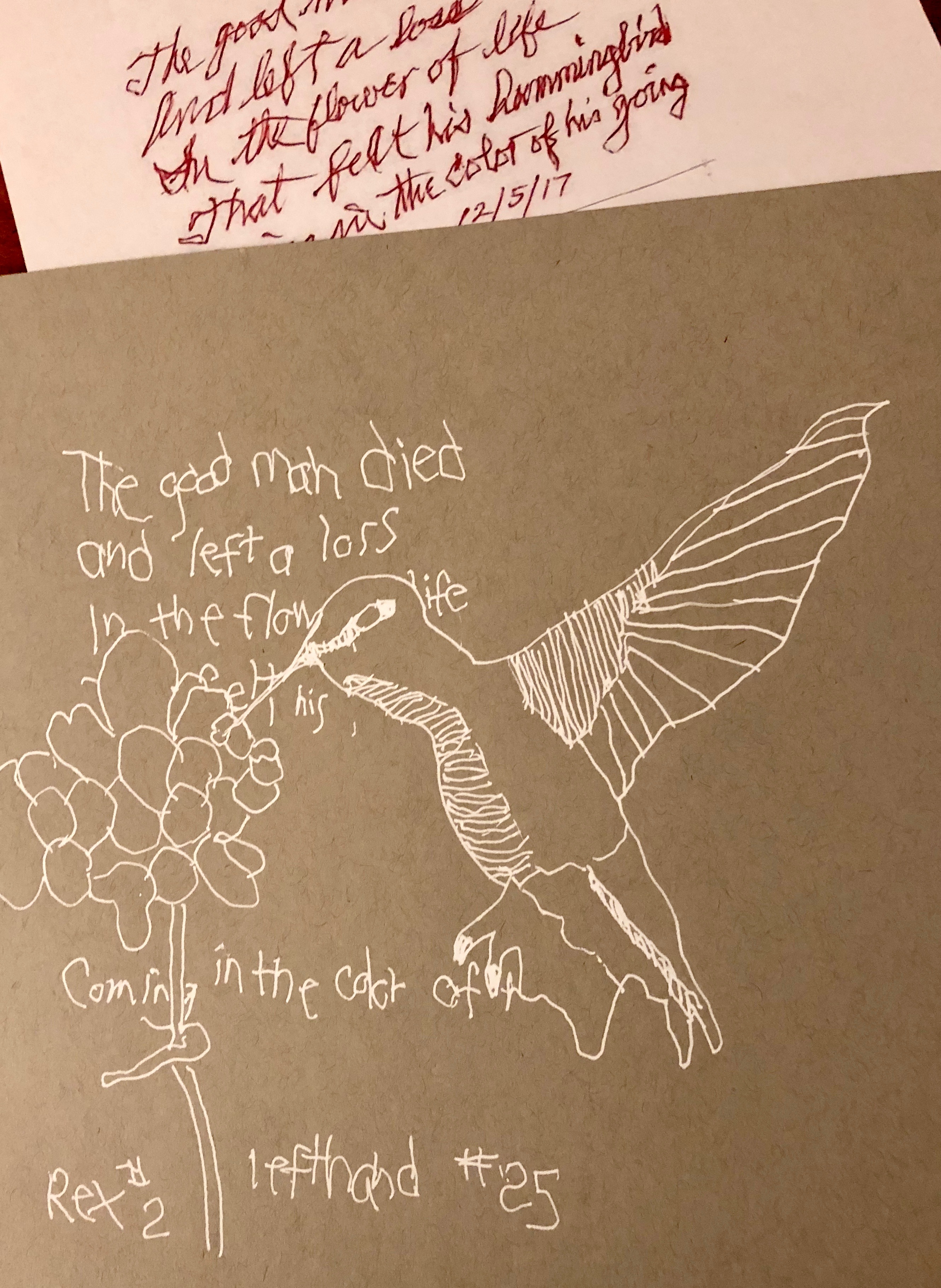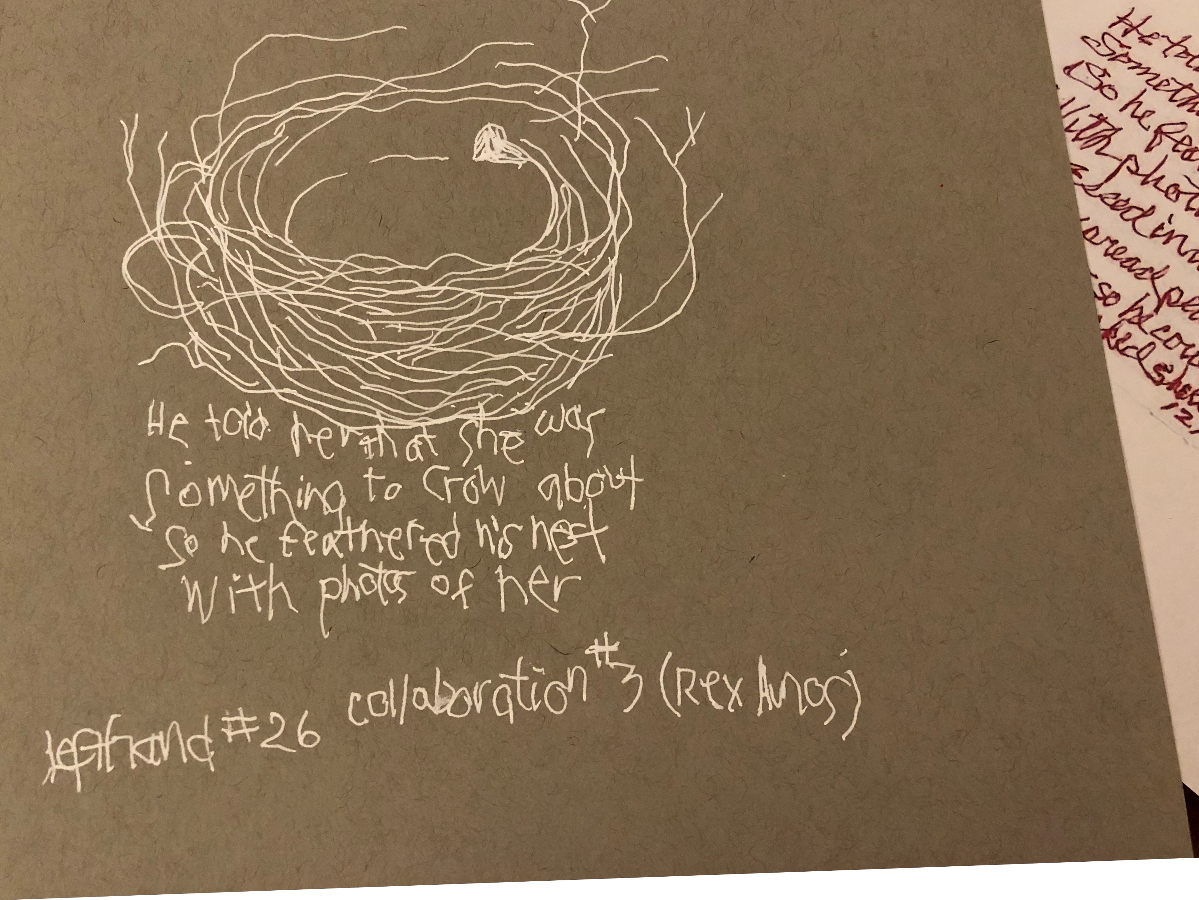 and now Rex and I are collaborating…he sends me one of his small BP poems, and I make a drawing to go with…