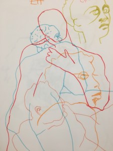 and then the hilarious thing…I was at life drawing and doing quick two minute drawings…I hate wasting paper so I do them all on top of each other and I found that I automatically was grabbing a pen with my left hand…you’ll note my writing hasn’t improved at all… ahem…