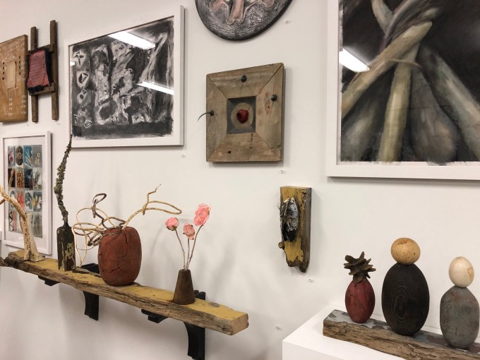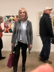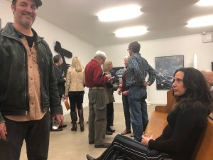 Michael Hernandez and Angee Schmitt are working hard to make an interesting gallery but also to foster an art community here in Salem…(here’s painter Marilyn Krug, with Art Department owner Jim Viegland in the background and curator/artist Jonathan Bucci with Schmidt)