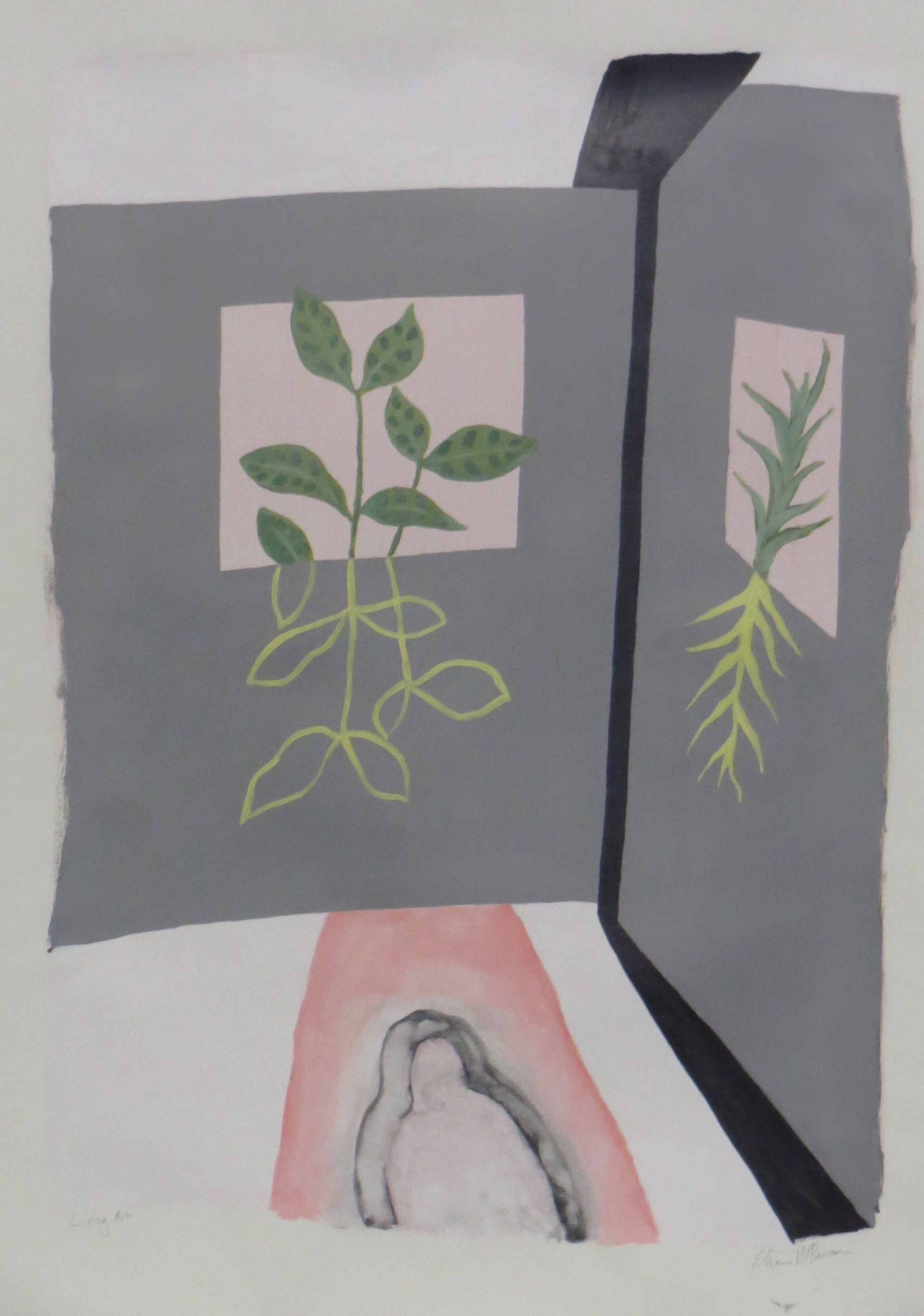 We repaired to our studios and worked away, not seeing each other’s work, until we were hanging all twelve up in October for an Open Studio event.  I was using gouache, Elizabeth used acrylic.  My work time looked like this: