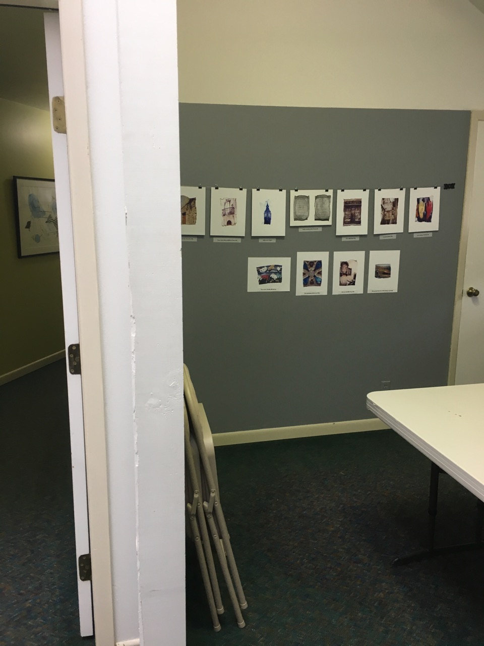 we chose a spot high on the wall in the workroom at our studio (Studios at the Mill…10 artists, 10 studios, a kitchen and a workroom) and I took the north side of the room and Elizabeth took the south side, photographically speaking.  My half looked like this: